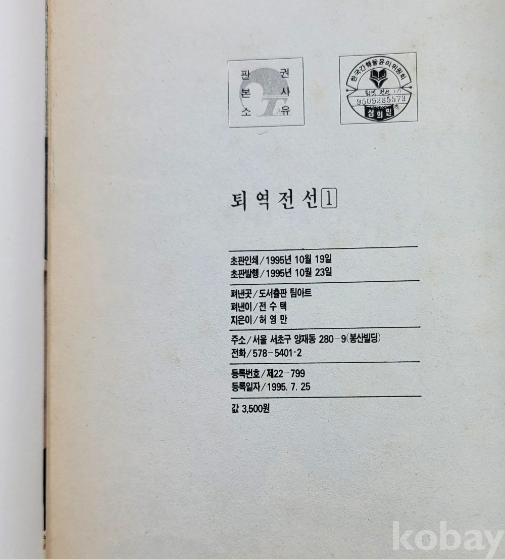 물 품 명 | 허영만 / 퇴역전선 1~6완결 총6권 / 1995년 초판 / 도서출판 팀아트 |
