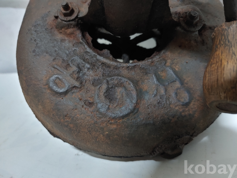 ""소, 동성 글씨가 있는 옛날 소형 앉은뱅이 무쇠 풍로""