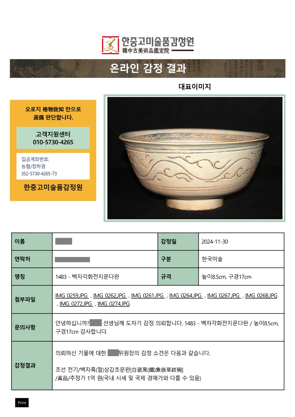 특히 기물을 받고 나서, 누구에게 보였더니 가짜라 하더라 하시며 반품하는 분들이 있는데, 이런 분들은 절대 입찰하지 마십시요.
