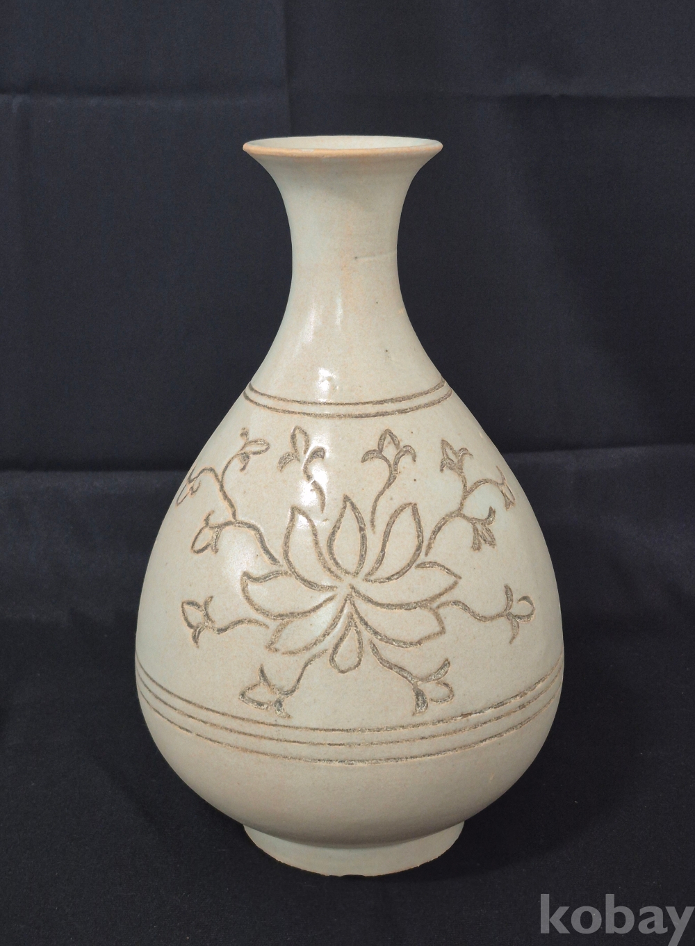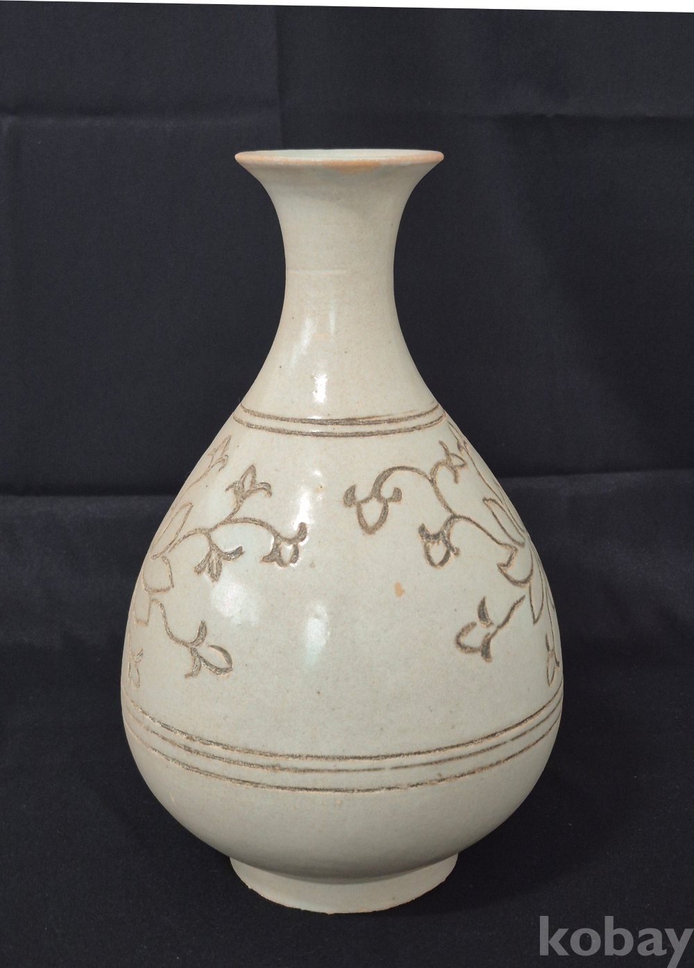 보기 드문 조선 전기의 상감 백자 술병 입니다.