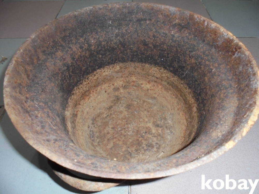 옛날부엌에서 숯불로 굽고 장 반찬등을 많이끓이던 다용도사용하던 두터워무겁고 오래된 우리에 무쇠전통화로