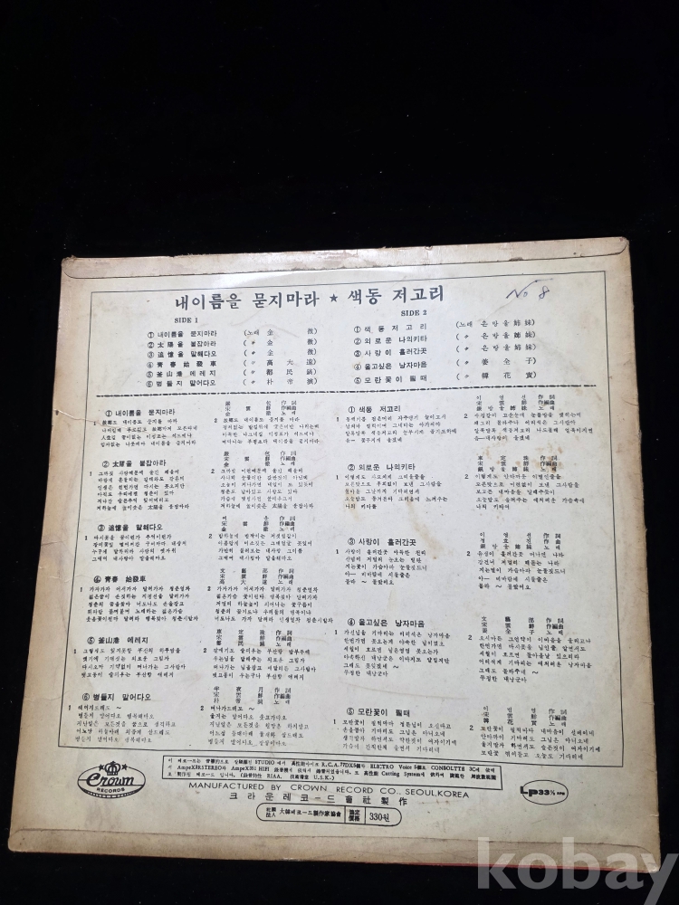 | 자켓상태 | VG : 주름, 접힘, 모서리 찢김 다수 | 음반상태 | VG : 생활 기스 다수, 가벼운 노이즈 존재 | 발매정보 | 초반 | 가사지여부 | 무 |