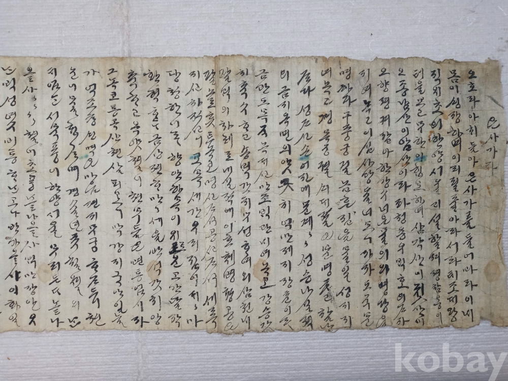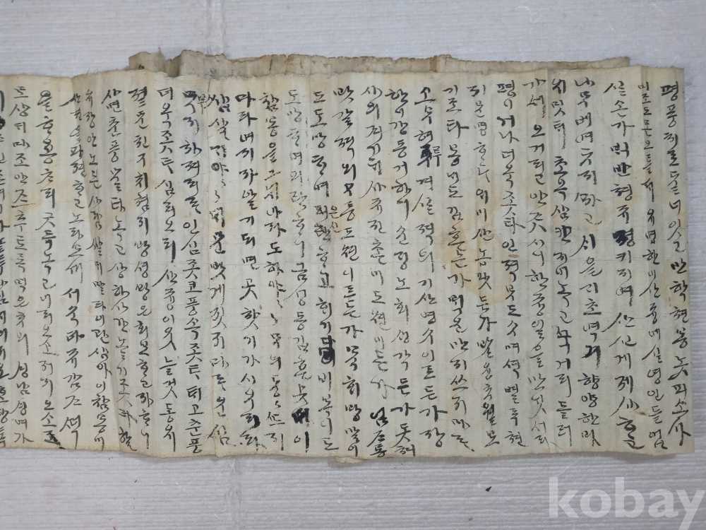 한쪽면에 끝까지 필사되고 뒷면에 1/4정도 더 써졌으며 모서리에 약간의 훼손이 있습니다.