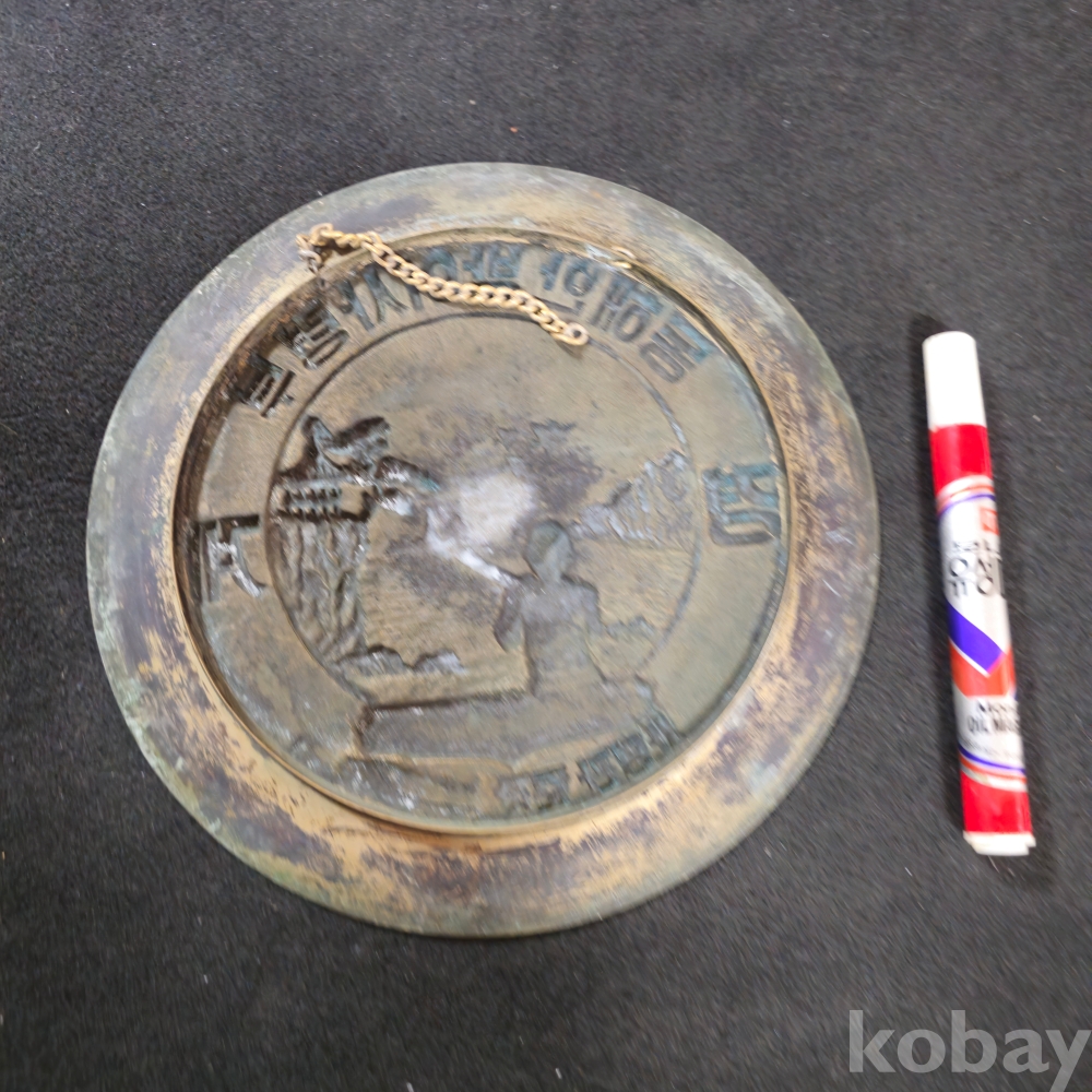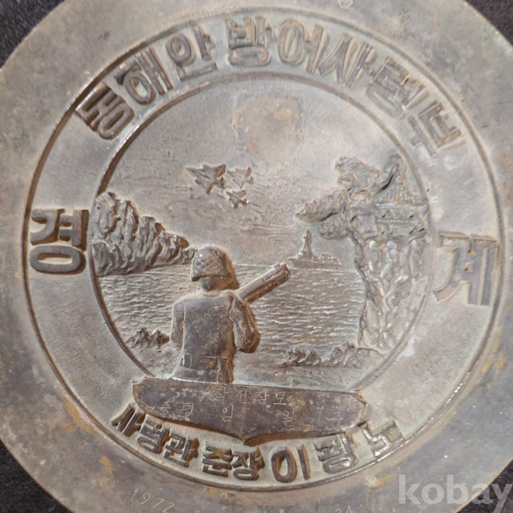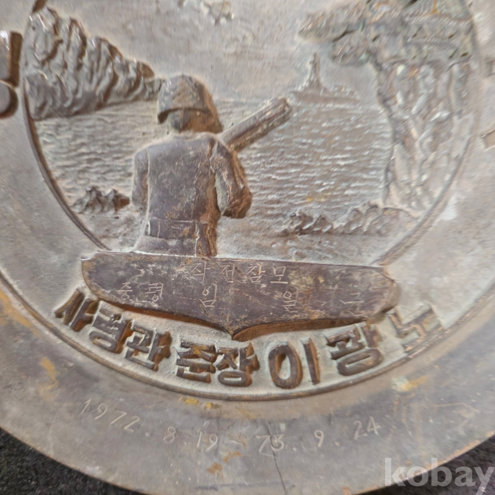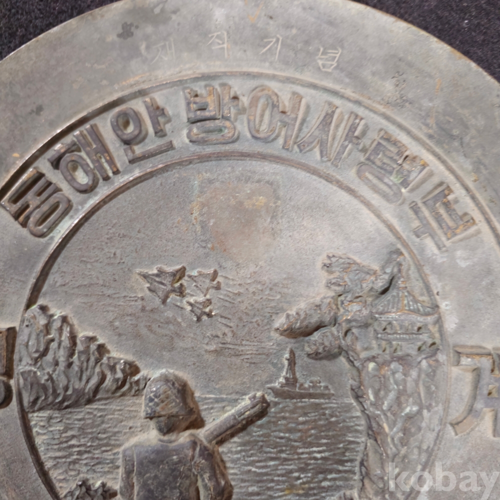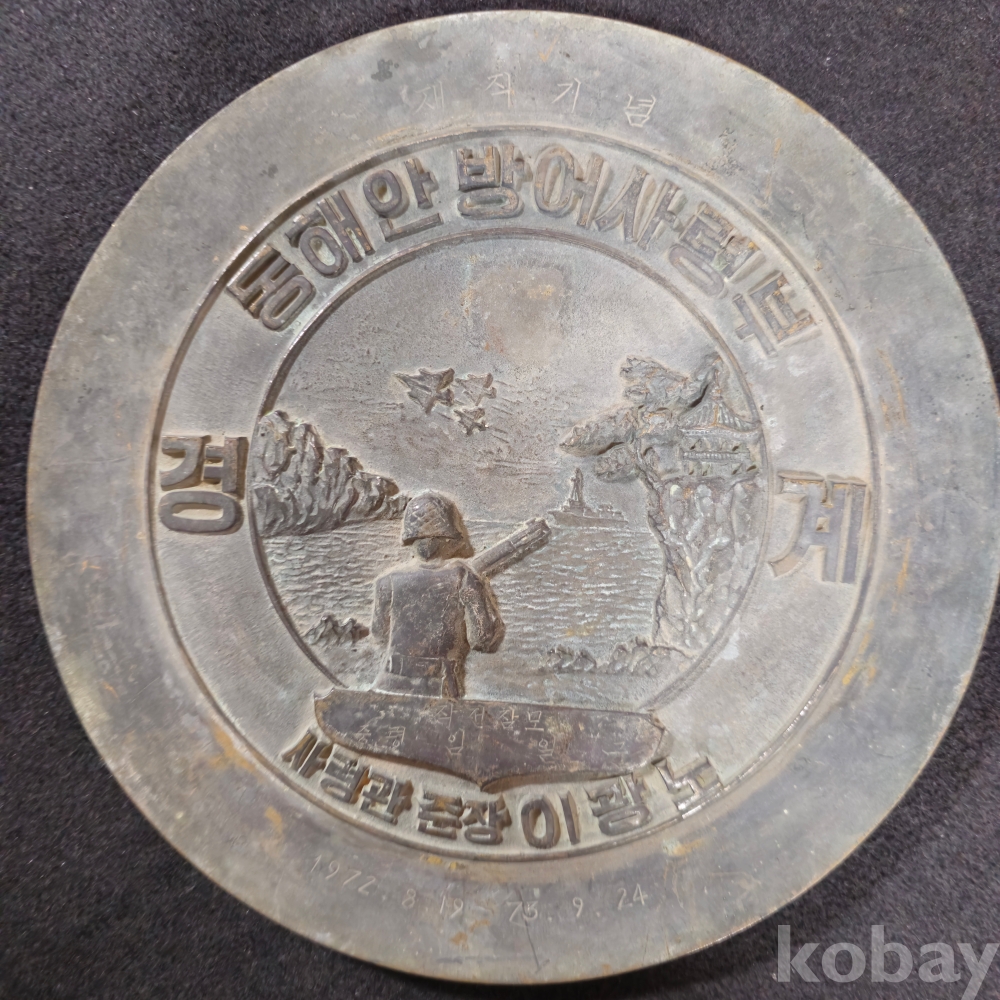 (((군자료))) 1972년 동해안방어사령부 경계부대 재직기념 놋쇠 벽걸이 접시 (사령관 준장 이광노)