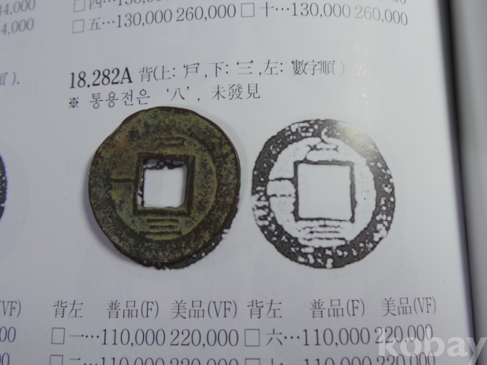 도록에 아주 비싸게 나오는 귀한 형태의 상평통보 戶 一 三.당일전