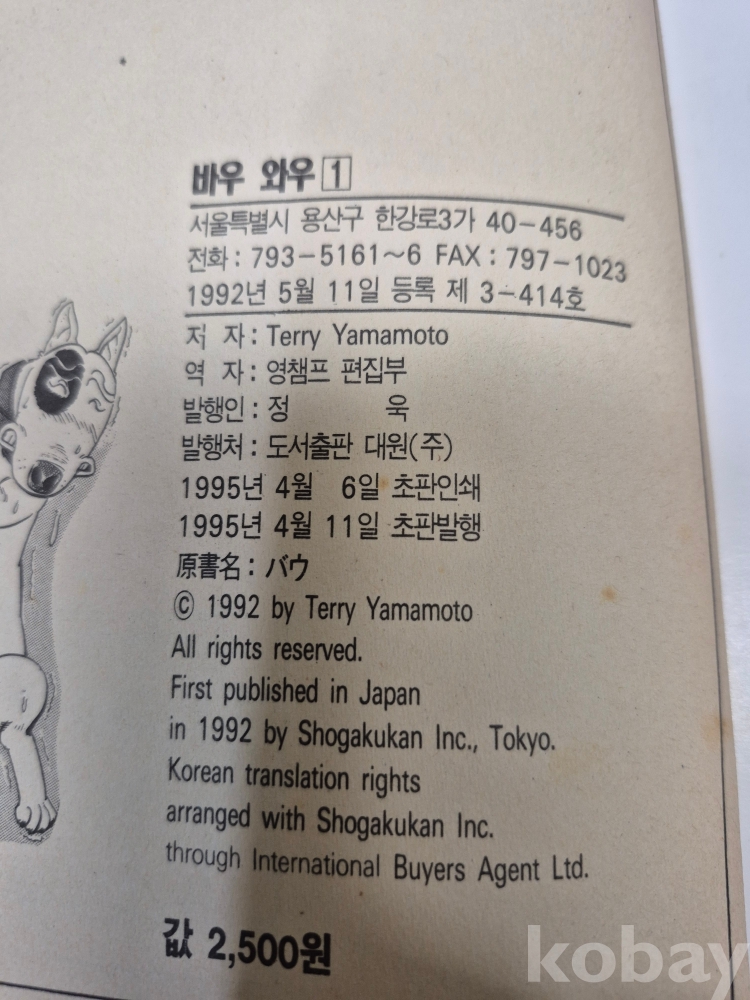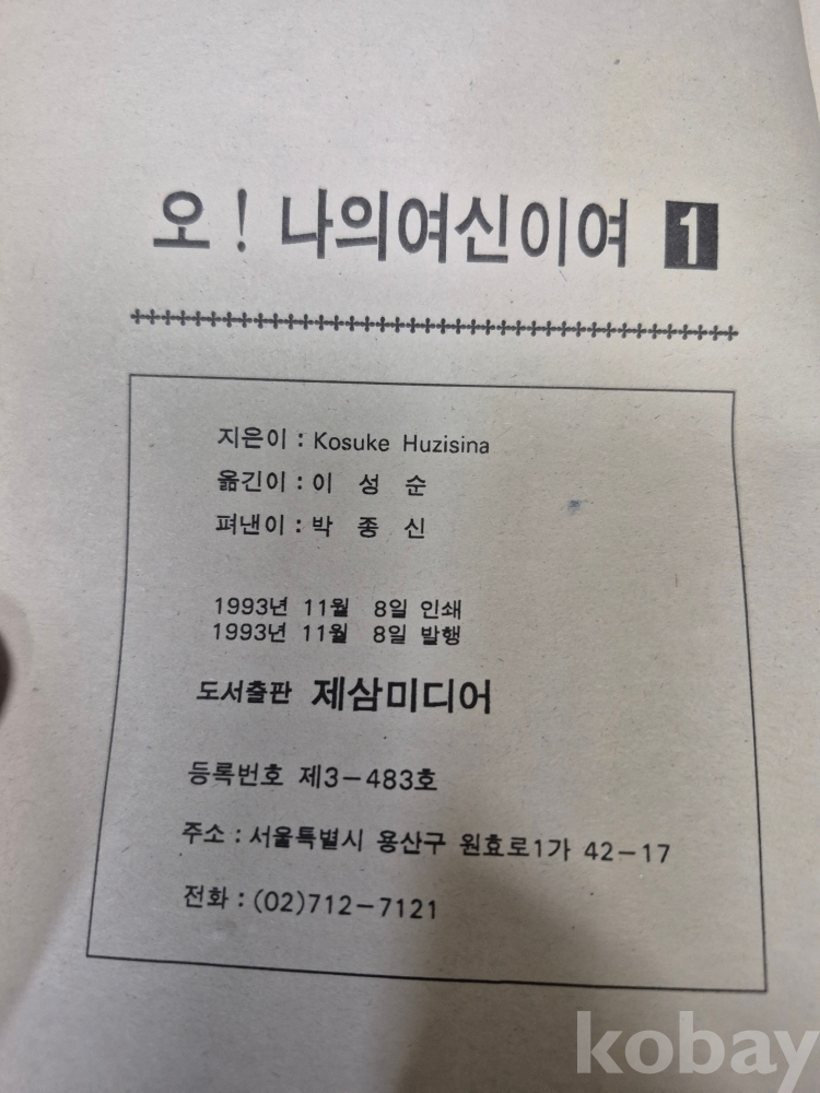 1993년 초판 후지시마 코스케 작가 오 !나의 여신영 4권 1995년 초판 야마모트 테리의 바우와우 5권 일괄