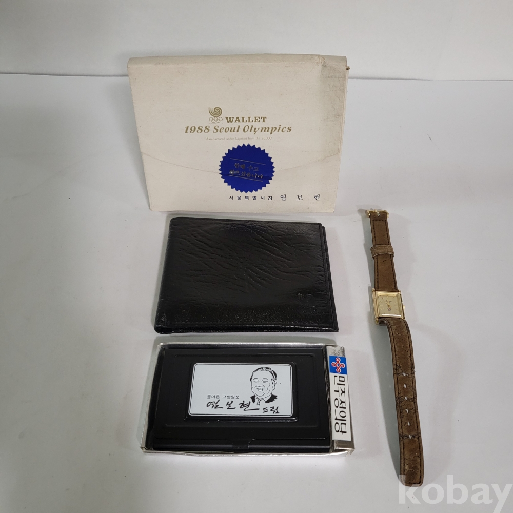 [희귀 근대사 자료] / 88 서울올림픽 엠블럼이 있는 시계, 염보현 가죽지갑 및 명함집 일괄