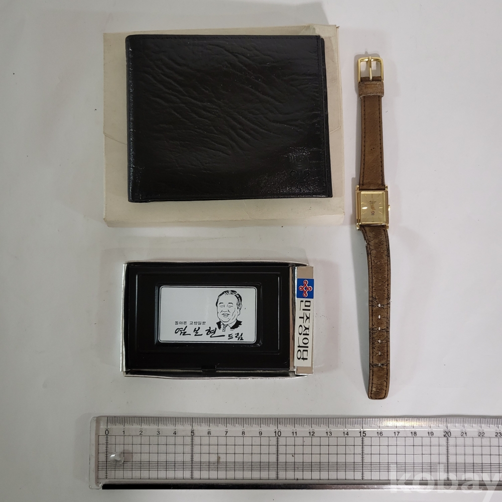 지갑과 명함케이스는 미사용이며, 시계는 상태 양호하나 작동여부는 모릅니다