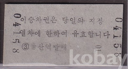 - 미사용 통일호 승차권 (특정구간전용) " 울산 ▶ 일광 " 1200원