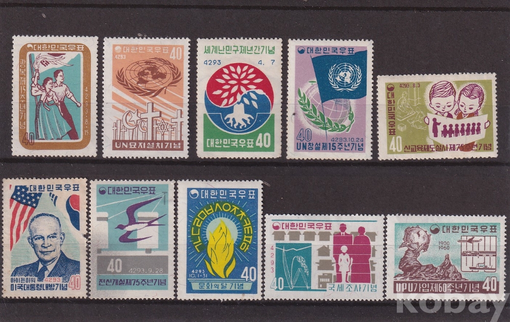 - 미사용 4293(1960)년 기념우표 10종 모음 / 아이젠하워, 문화의달 기념 등