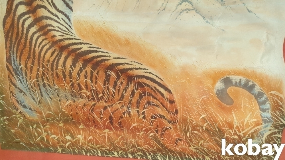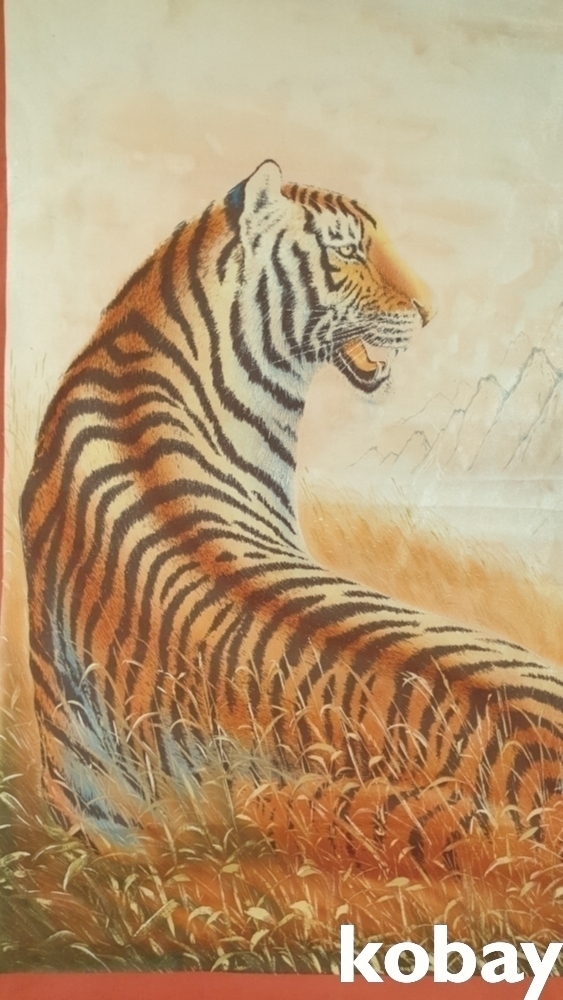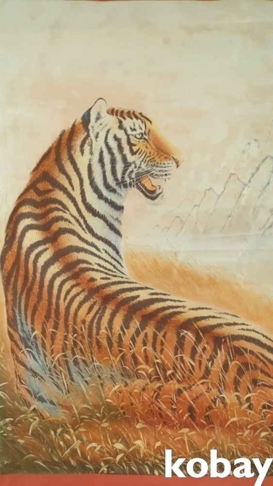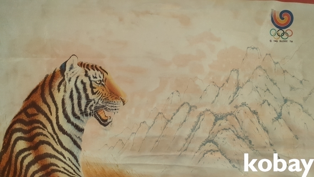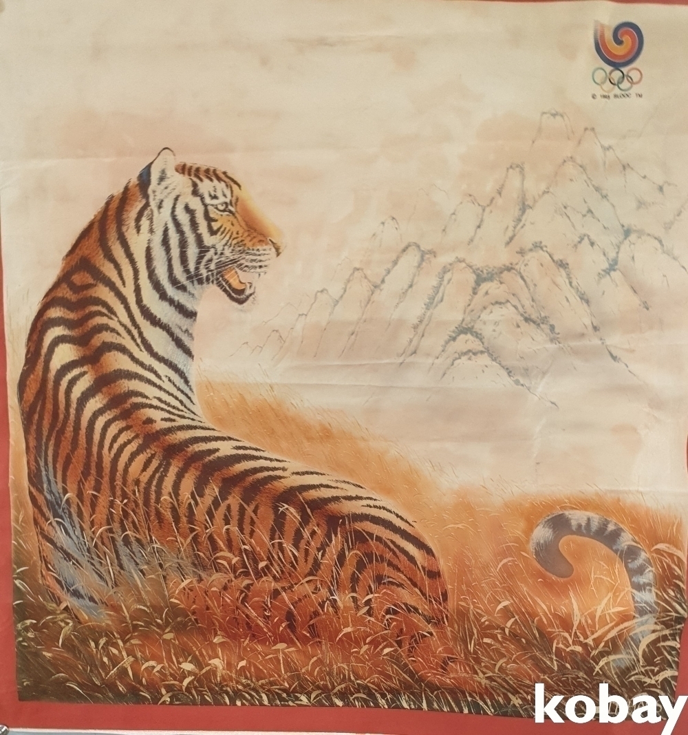 ⓒ 1983 SLOOC TM'과 오륜 88서울올림픽 엠블렘(emblem)이 있는 비단에 채색된 호랑이 그림입니다,