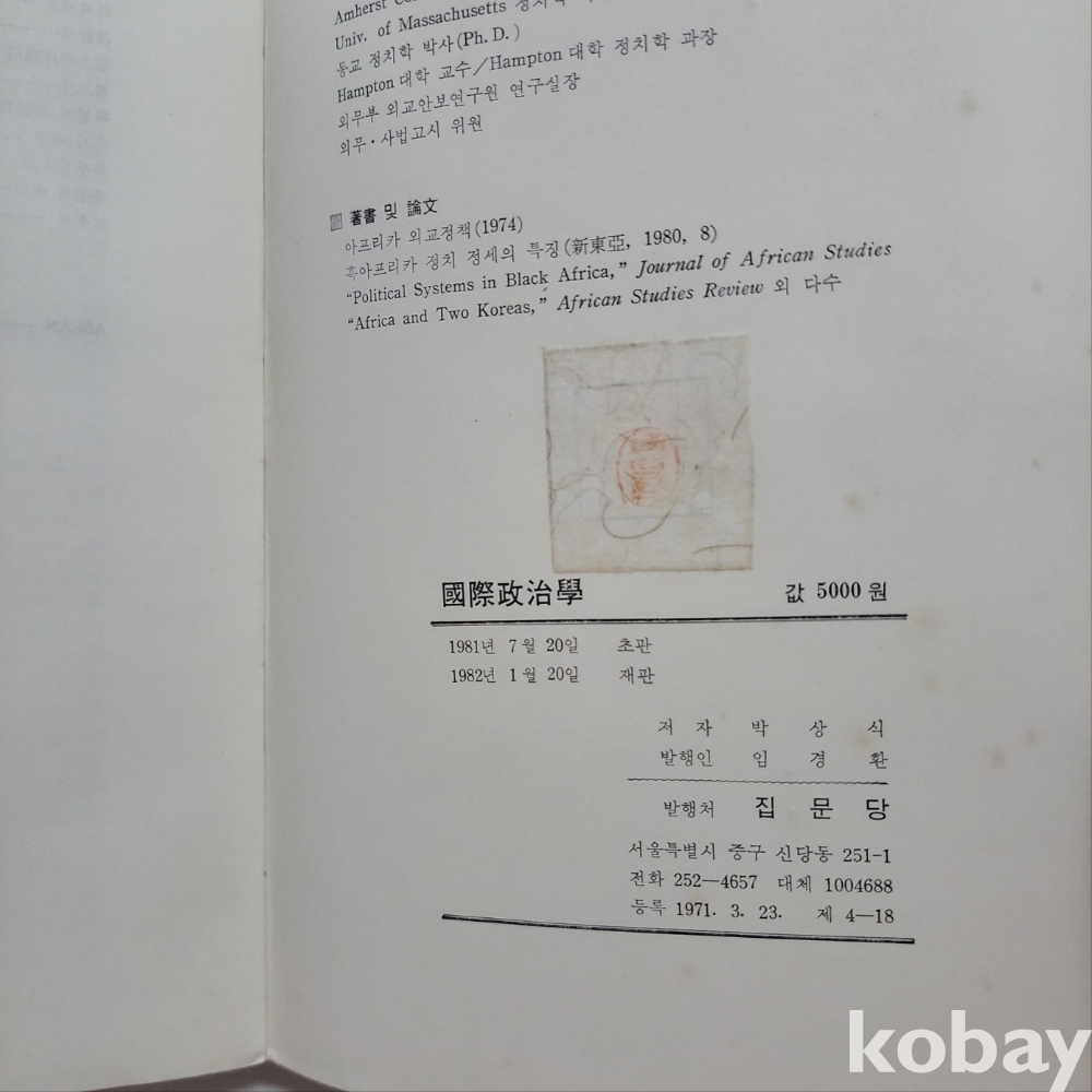 [천원경매] 1982년 집문당 발행 국제 정치학 도서