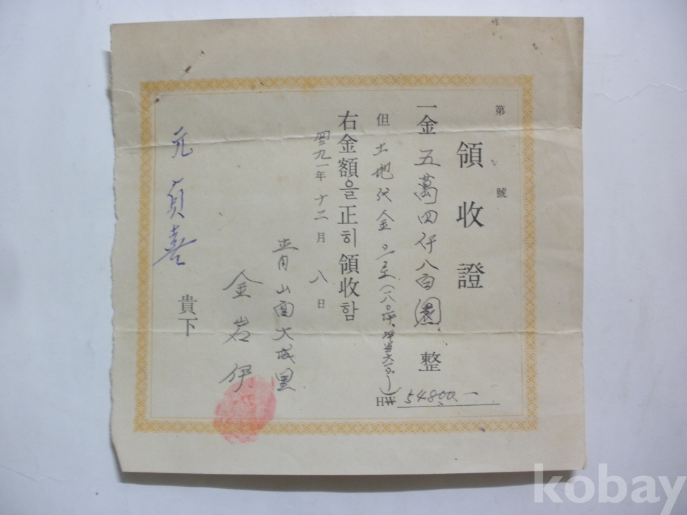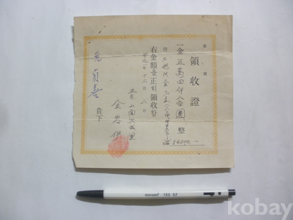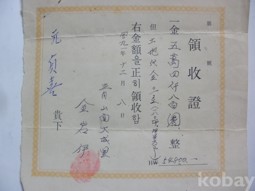 토지대금 - 영수증 (1958년, 청산면 대성리)