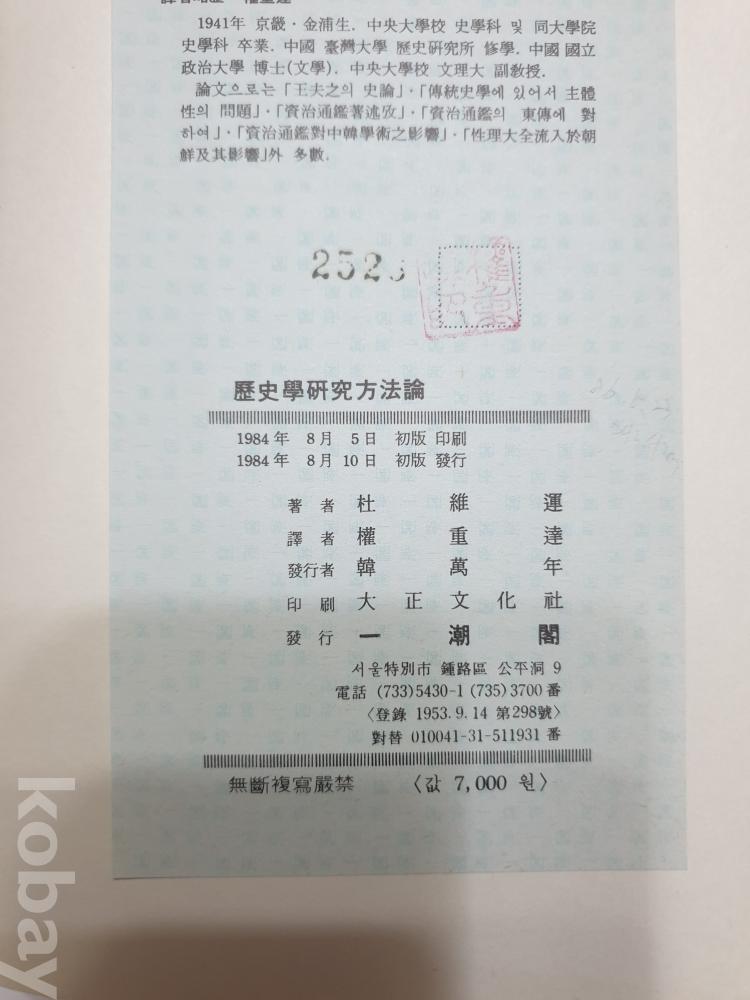 두유운 저 권중달 역, 일조각, 1984
