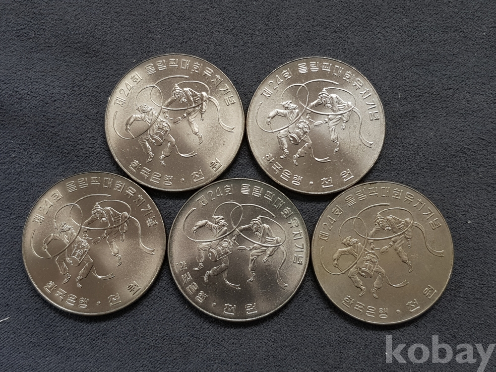 - 관봉해체분/ 제 24회 올림픽대회 유치 1차 민속춤 천원 기념주화 - 5개 일괄