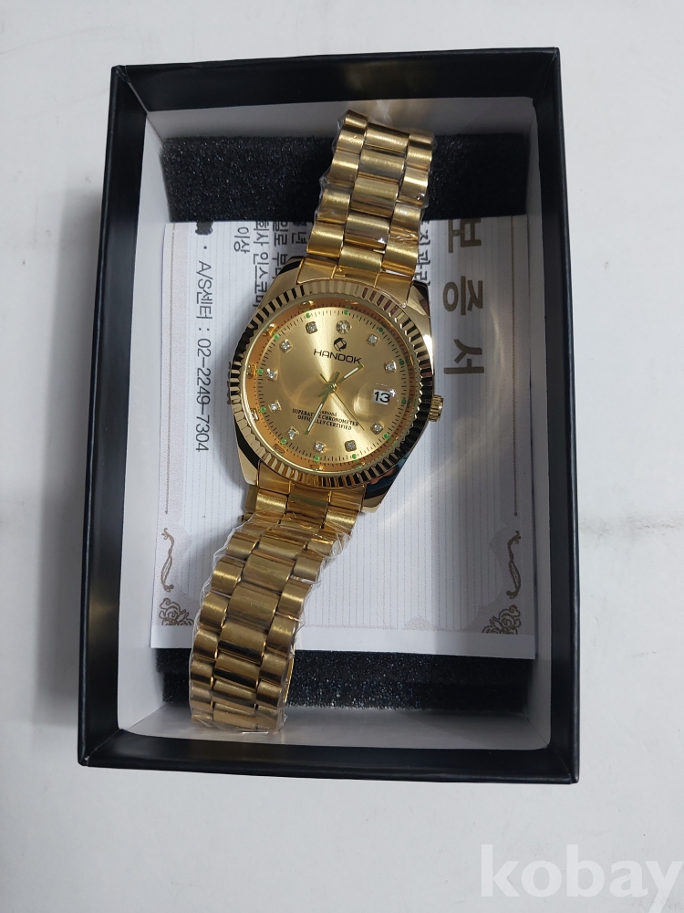 ★천원출발★ P-11-050 한독 금색 남성 손목시계(검정 케이스)