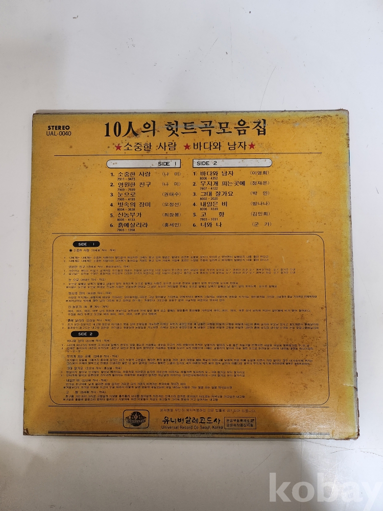 | 자켓상태 | VG : 주름, 접힘, 모서리 찢김 다수 | 음반상태 | EX : 재생에 영향 없는 가벼운 기스 존재 | 발매정보 | 초반 | 가사지여부 | 무 |
