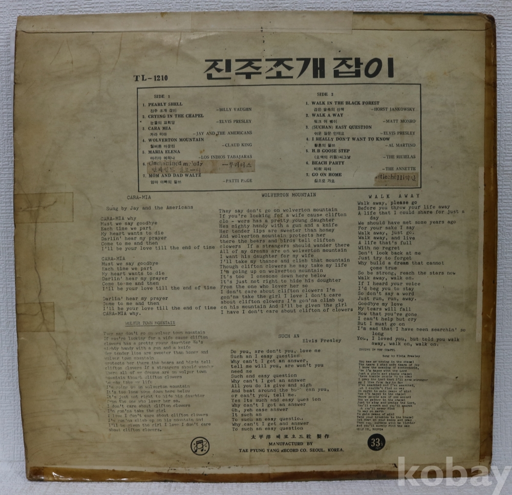 | 자켓상태 | G : 눈에 띄는 손상, 테이프, 필기 존재 | 음반상태 | G : 눈에 띄는 스크래치, 튐 또는 노이즈 발생 | 발매정보 | 알수없음 | 가사지여부 | 무 |