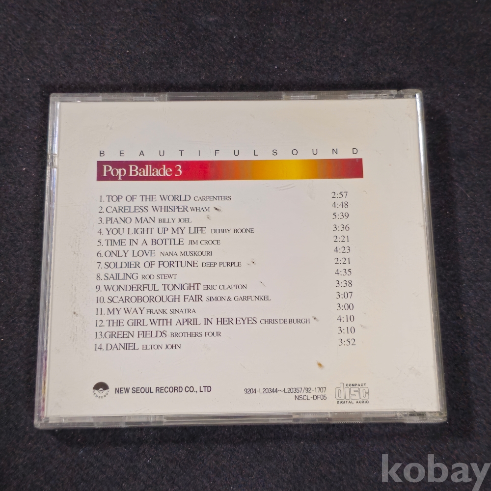 (천원경매)(((국내가요/POP/영화음악/CD))) POP BALLADE 3 주옥의 레퍼토리 CD (1992)