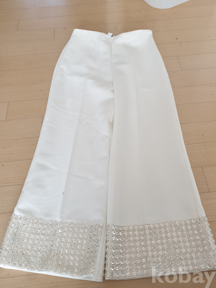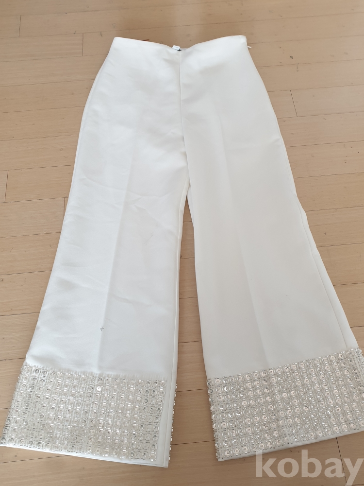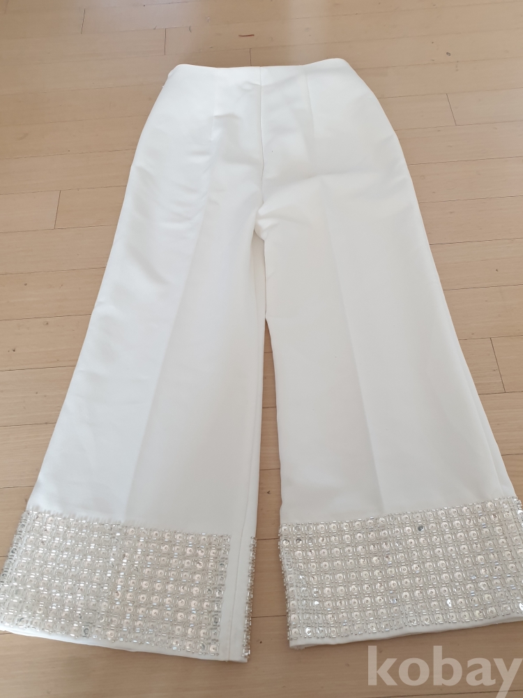 [천원경매] 11-369 밑단 비즈 장식있는 여성용 봄, 여름용 와이드핏 바지(허리 단면 30cm, 길이 85cm)