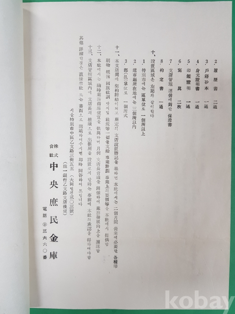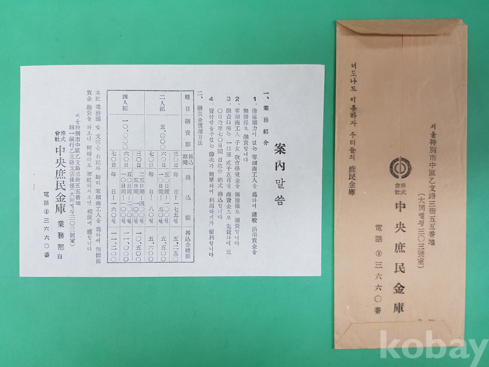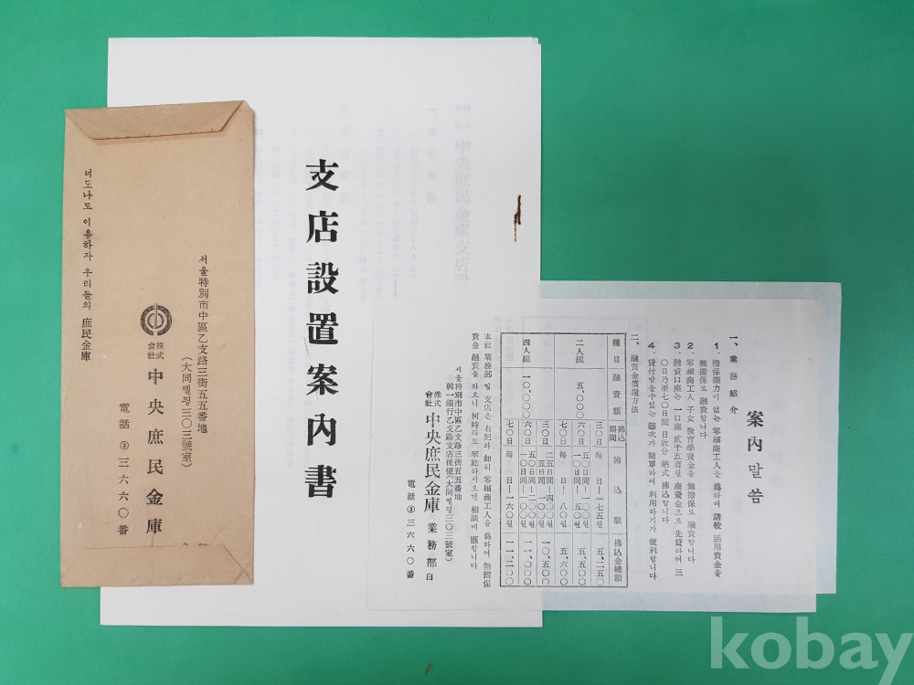 1960년대 中央庶民金庫 支店設置案內書*지점설치안내서,안내말씀 리플릿