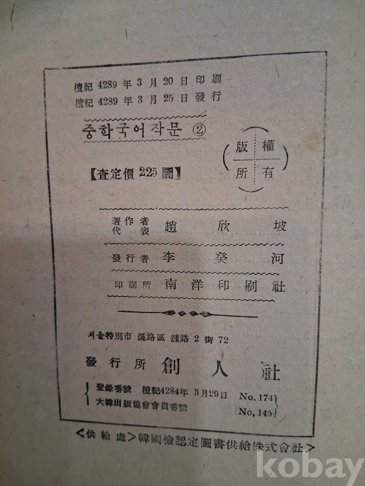 [1956년 교과서]중학 국어작문2/이헌구,백철,이무영,조흔파,조영암 공저/창인사