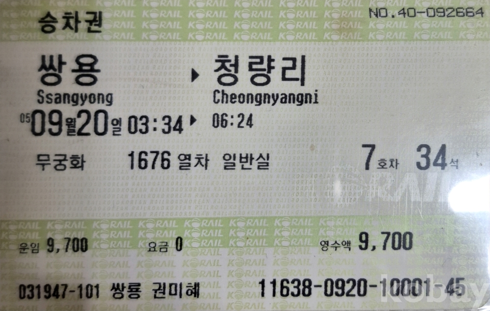 2005. 9. 21. 문곡역 발매 문곡-청량리 승차권입니다.