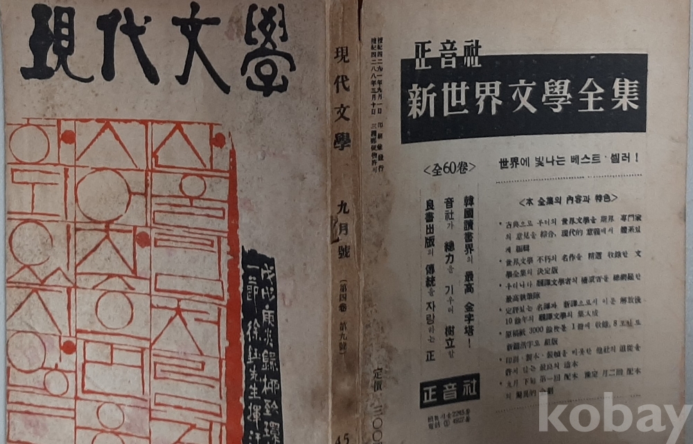 (별고)현대문학1958년9월호 NO45 표지 서세옥