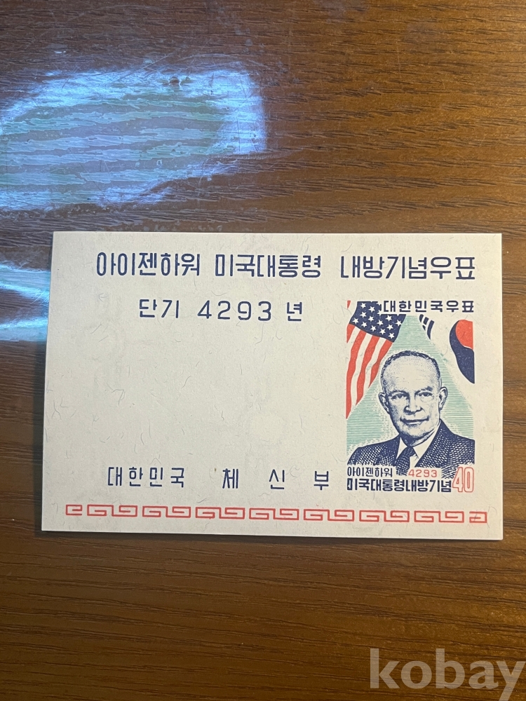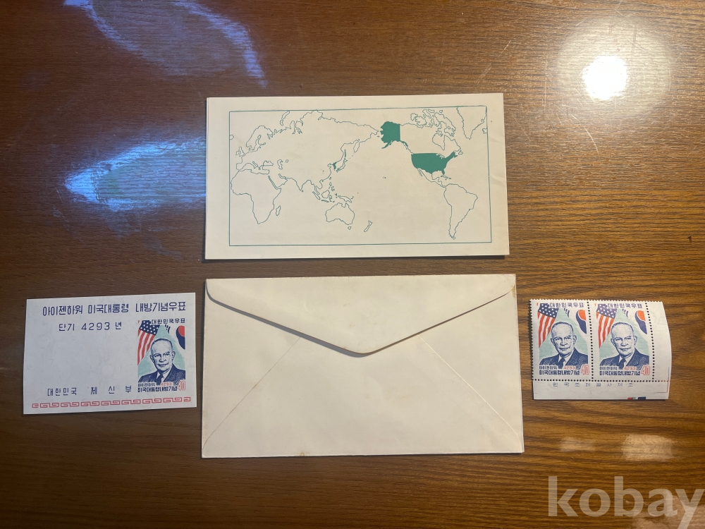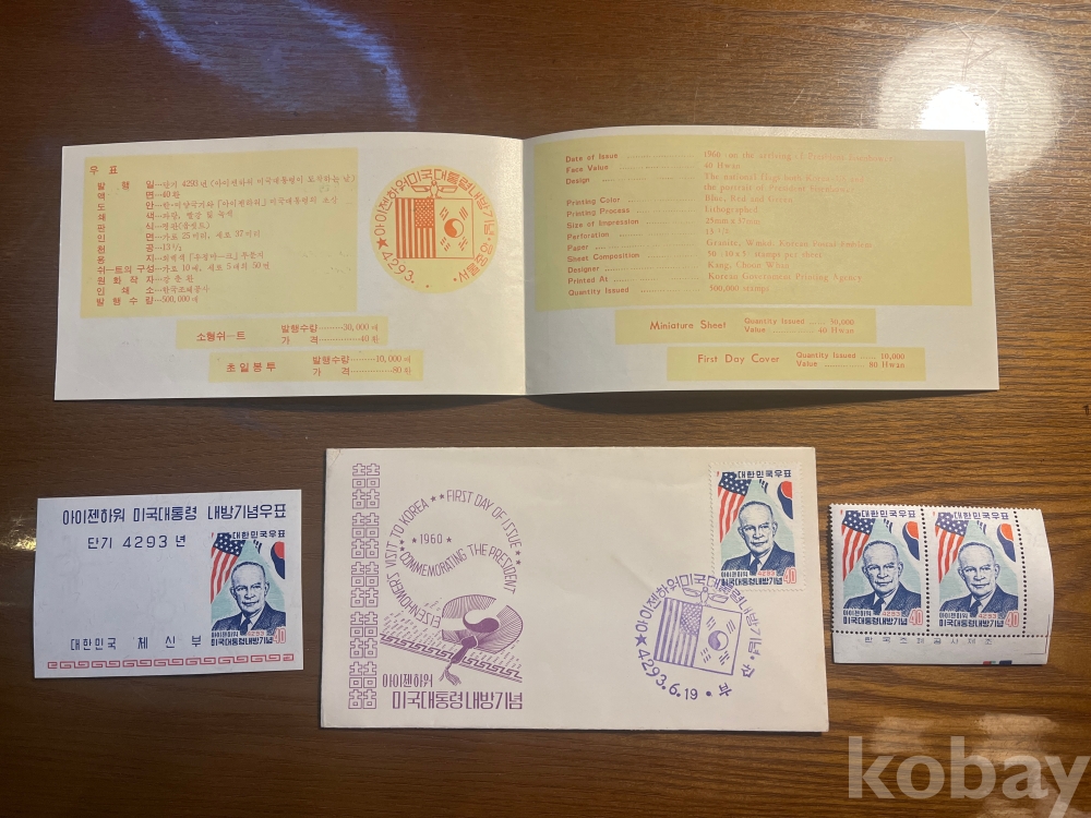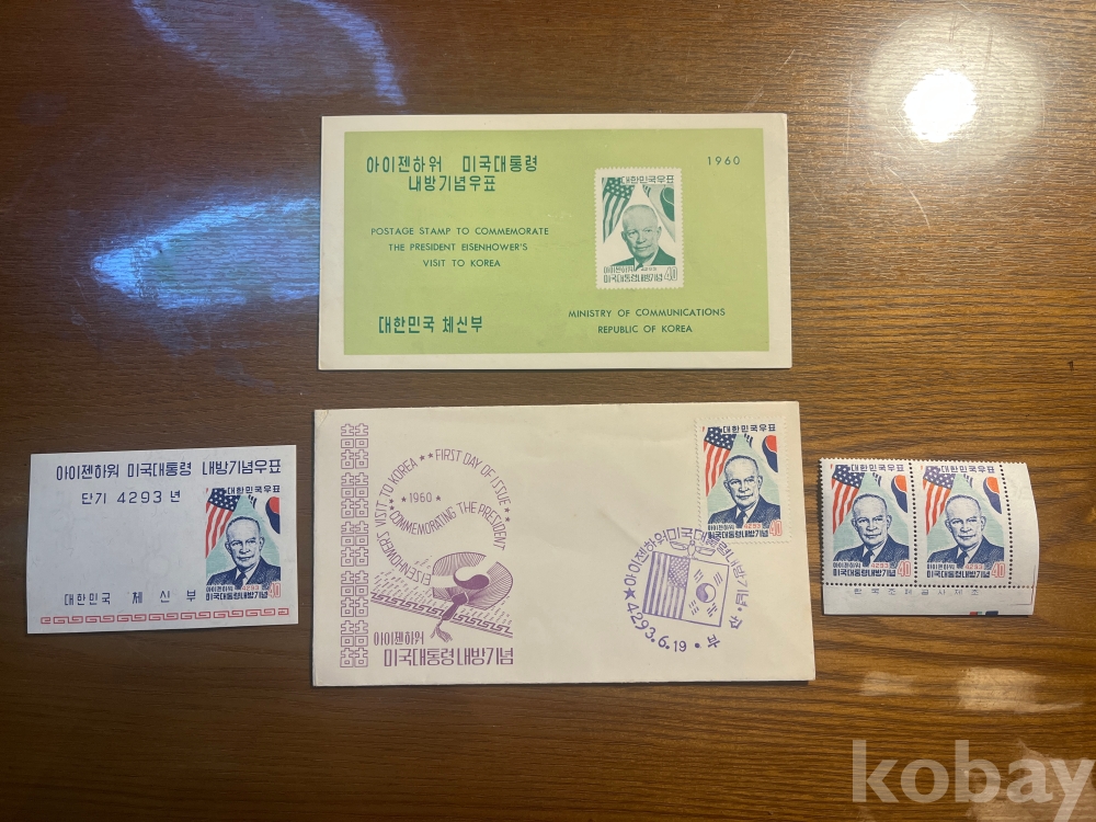 1960년 아이젠하워 미국대통령 내방기념 초일봉피, 소형시트, 우표, 안내카드 입니다.