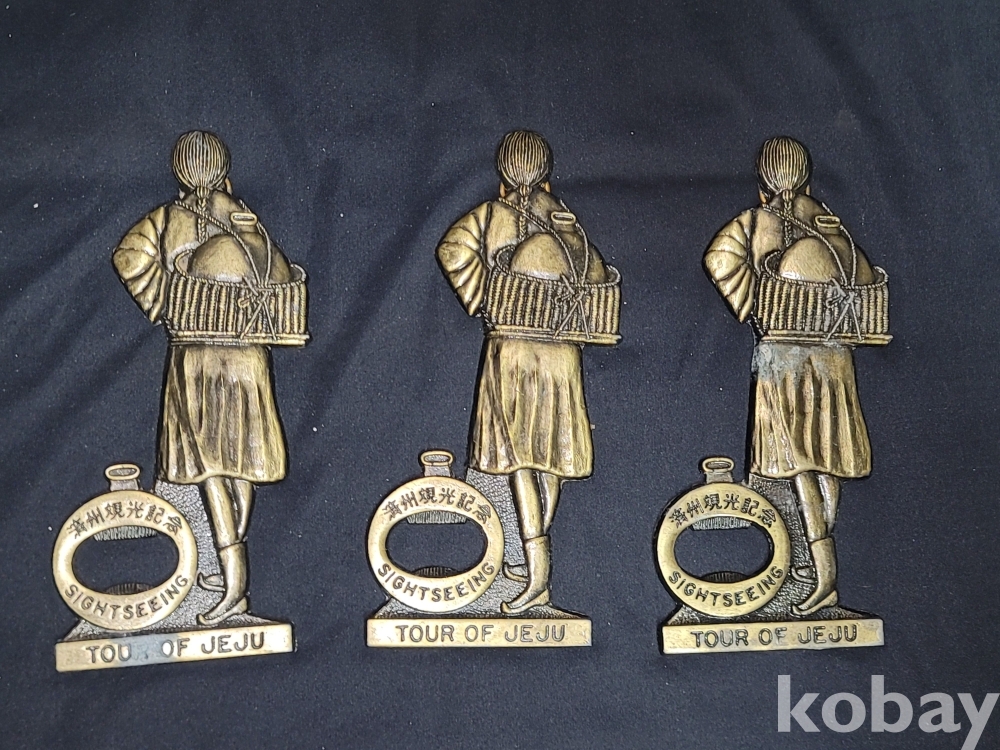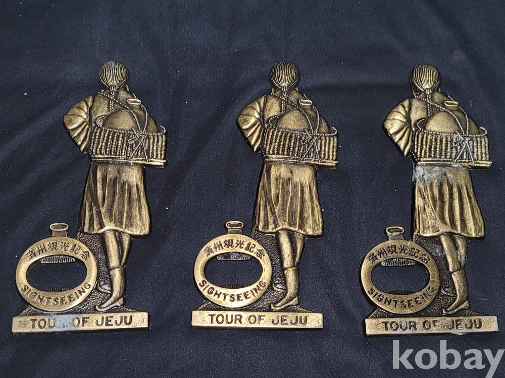 빈티지 제주도 관광 기념 제주도 여인 동 병따개 3개 일괄입니다.