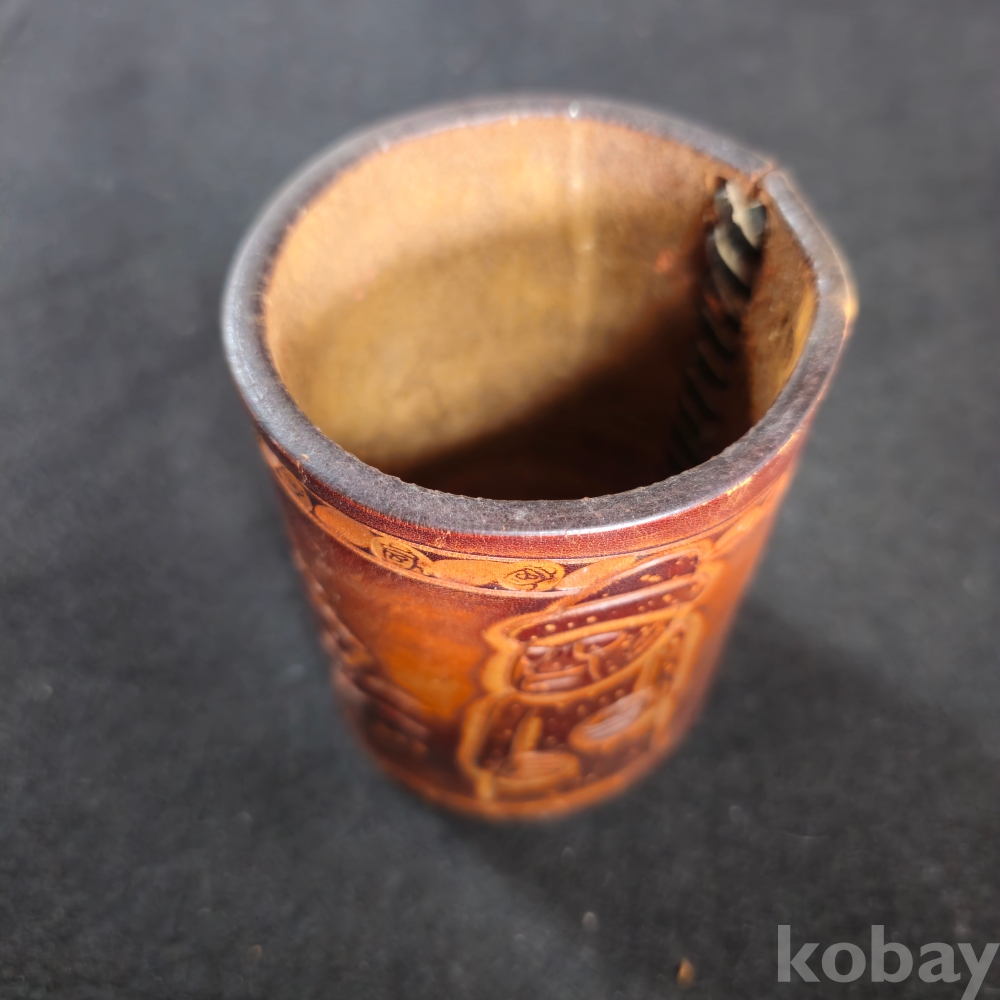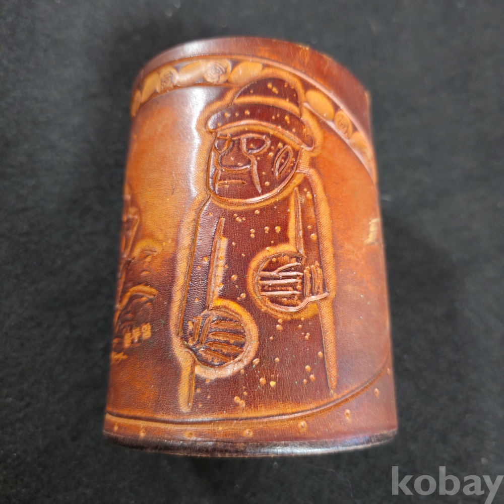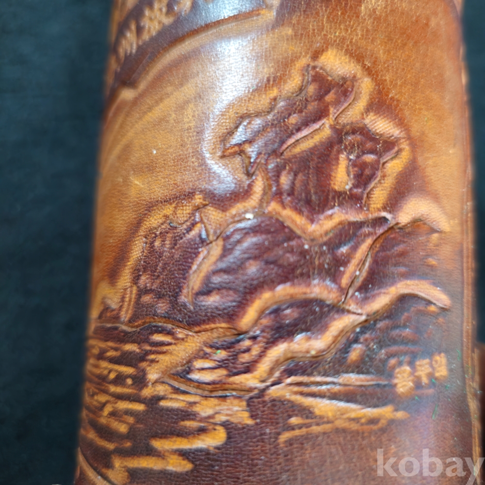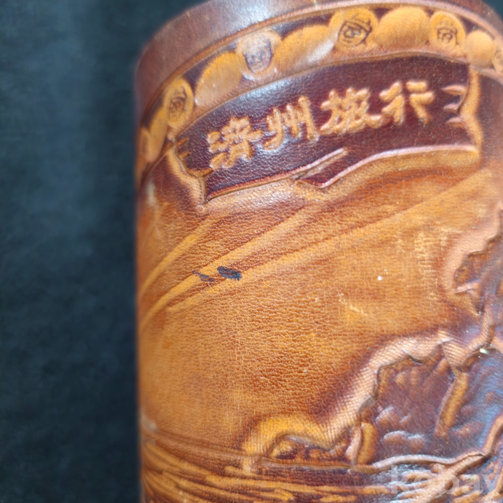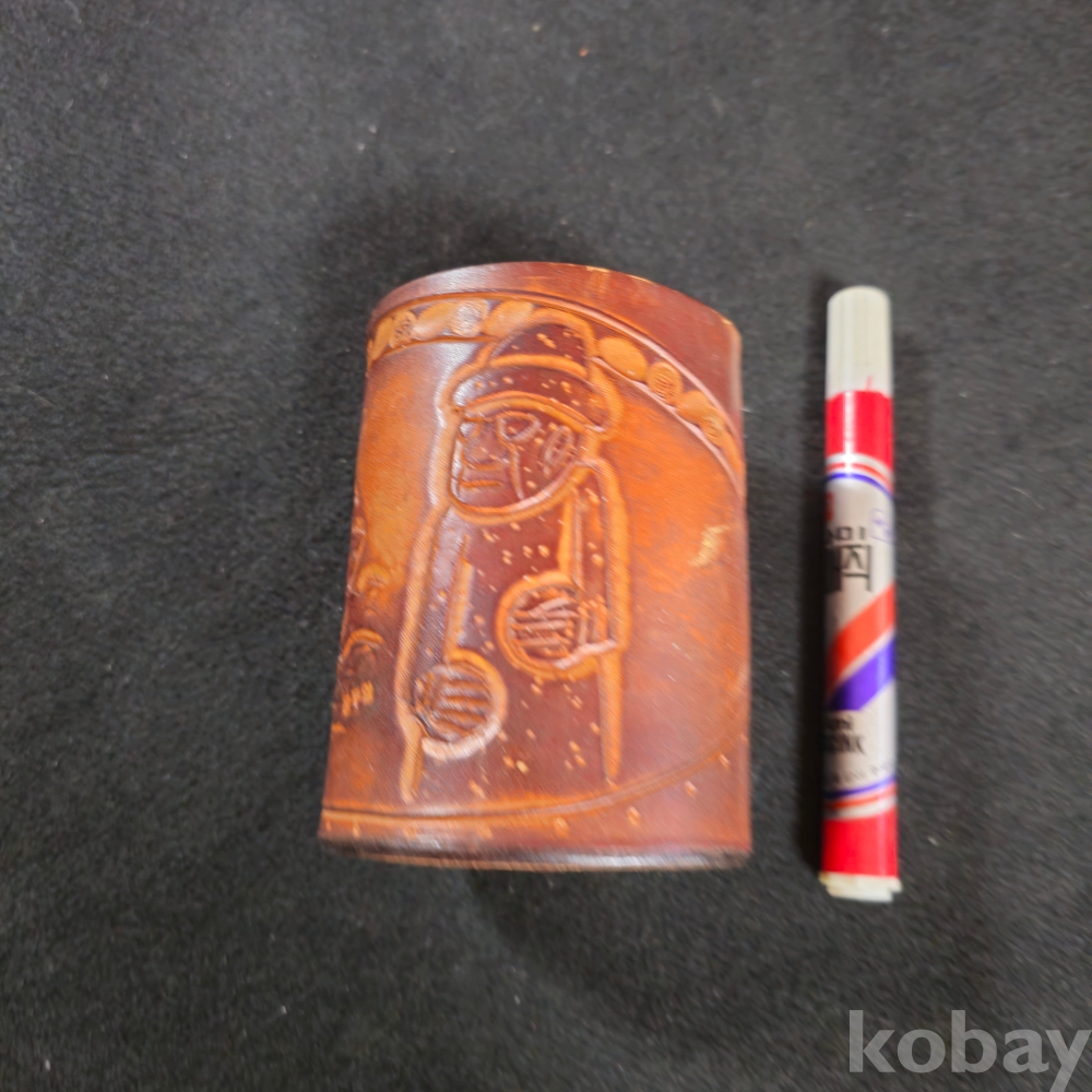 (((근현대사자료))) 오래전 제주관광기념 하루방/용두암모습있는 가죽 붓통