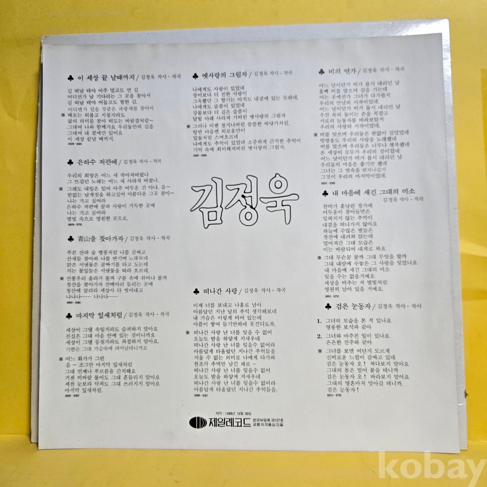 | 자켓상태 | EX : 약간의 마모, 모서리 찢김 존재 | 음반상태 | EX : 재생에 영향 없는 가벼운 기스 존재 | 발매정보 | 초반 | 가사지여부 | 유 |