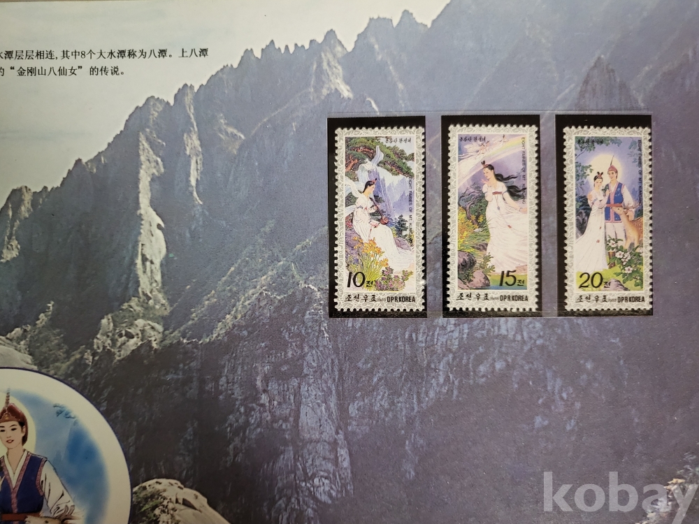 금강산, 백두산, 묘향산, 구월산 등 조선 명산들의 자연경관과 관련 유적등의 우표로