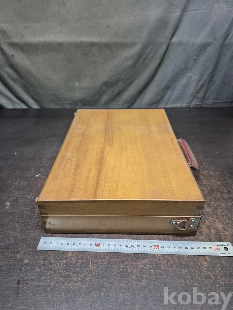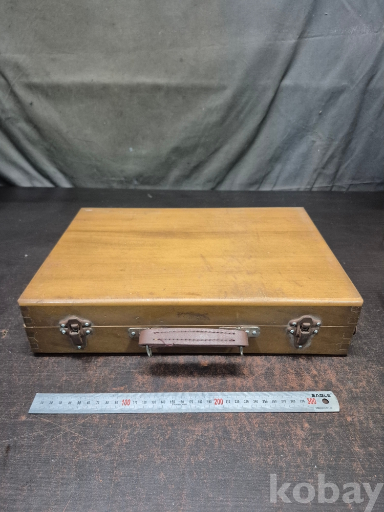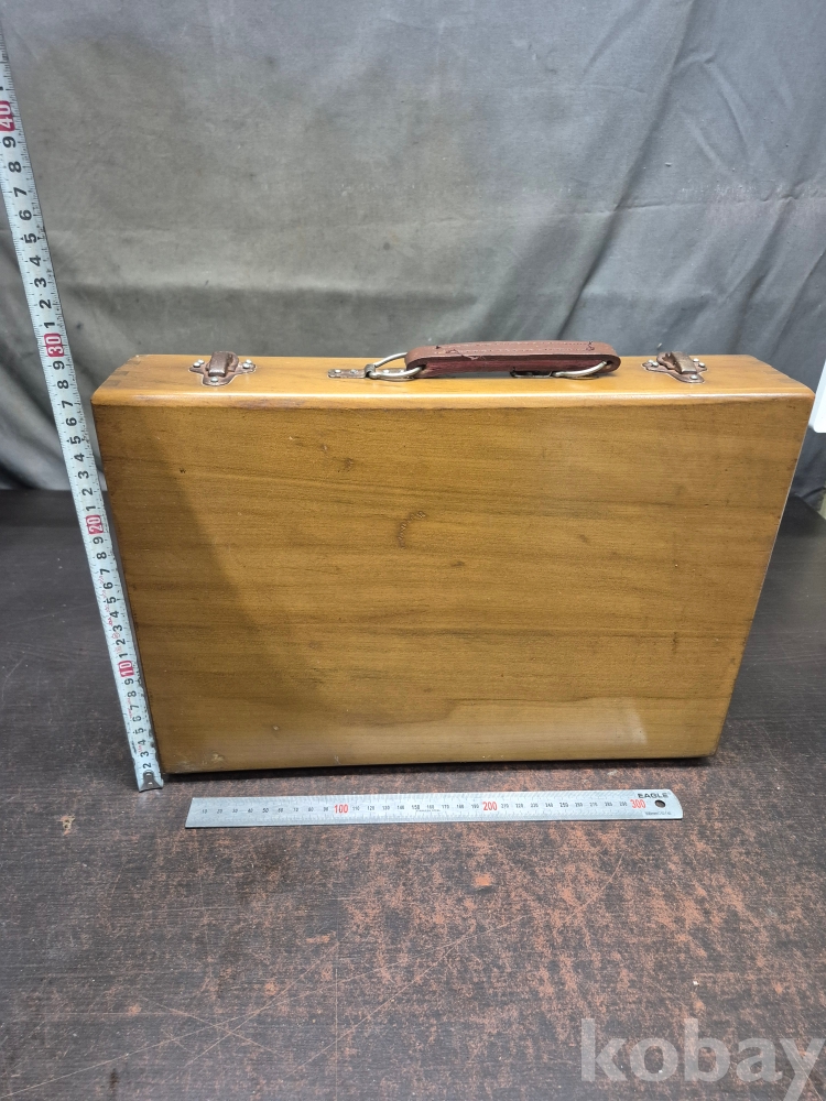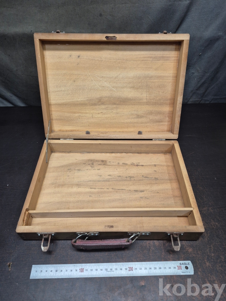 1980-90년대 원목 짜맞춤으로 만든 빈티지 나무 화구 물감 붓 팔레트 등을 수납하는 제품 가죽 손잡이 39*8*28