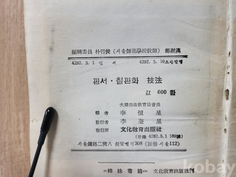 판서 칠판화 기법 이항성 1959년 3월 초판 발행입니다