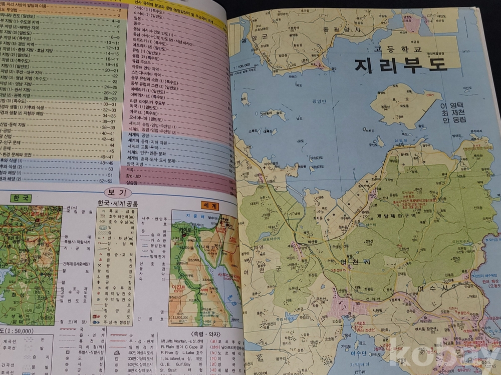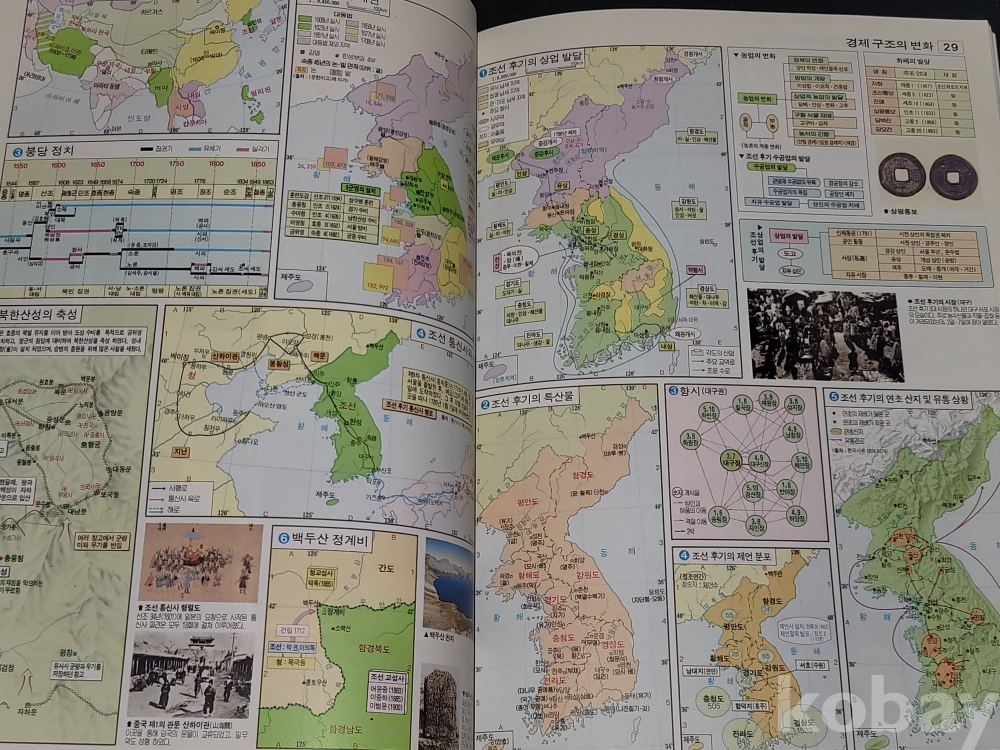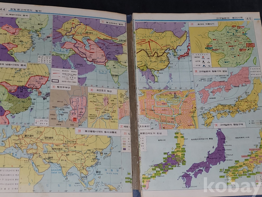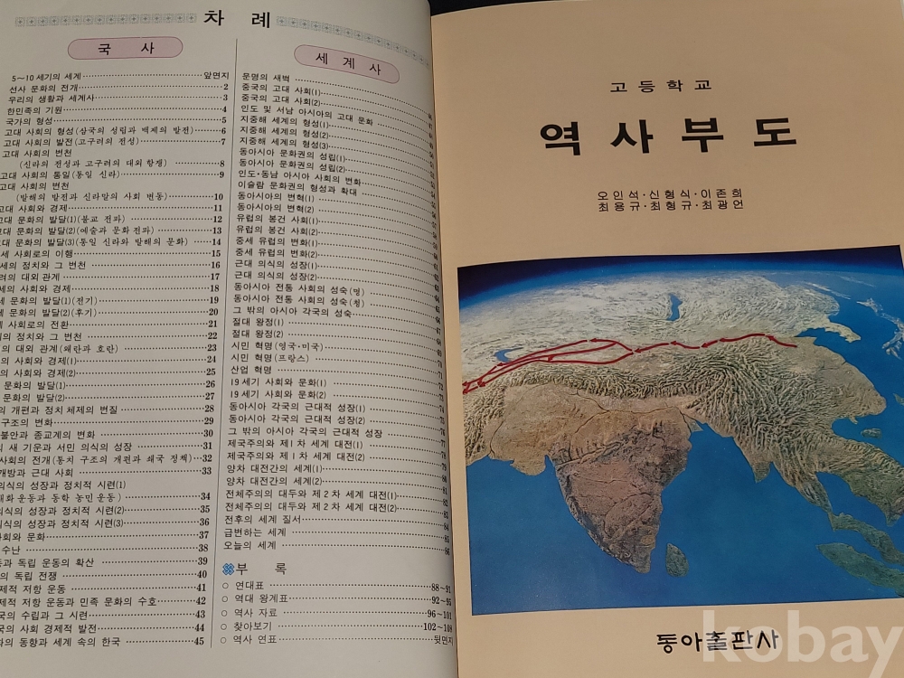 빈티지 세월 감이 느껴지는 1987년 사회과 부도, 1991년 지리 부도, 1993년 역사 부도, 1978년 표준 역사 보도 등 교과서 4권 일괄입니다.