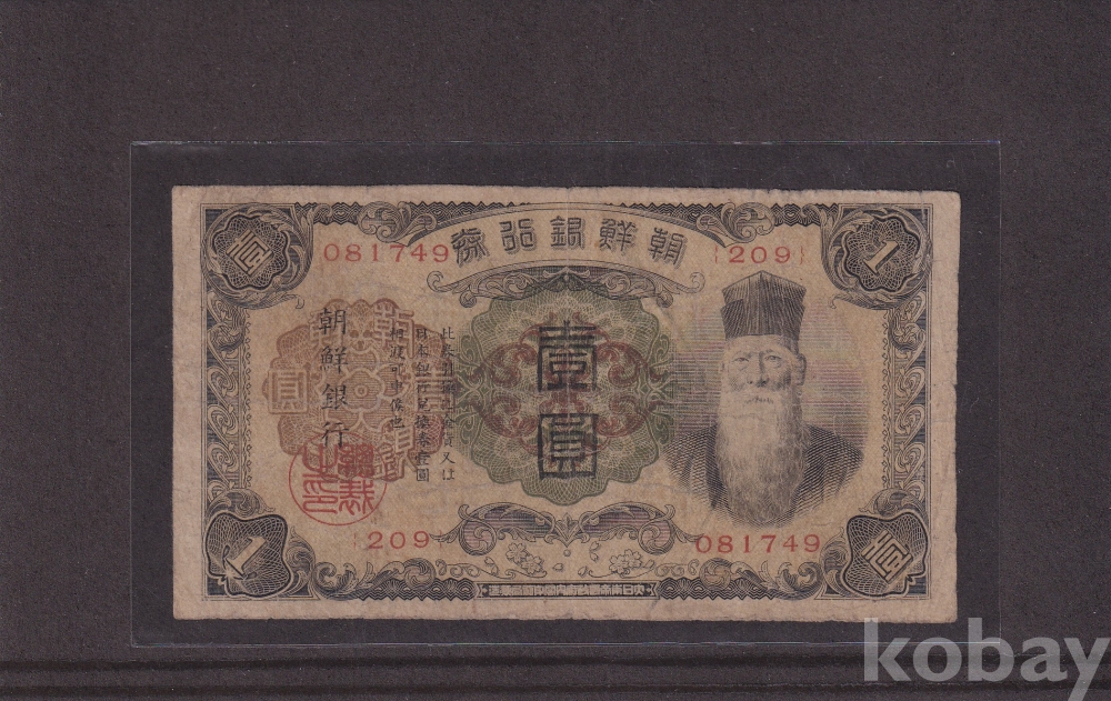- 조선은행 1932년 개 일원 판번호 209번 유번호권 사용제 지폐