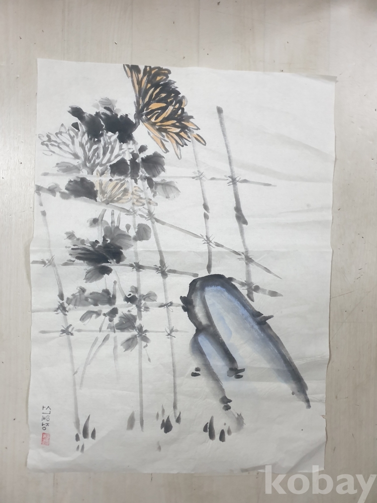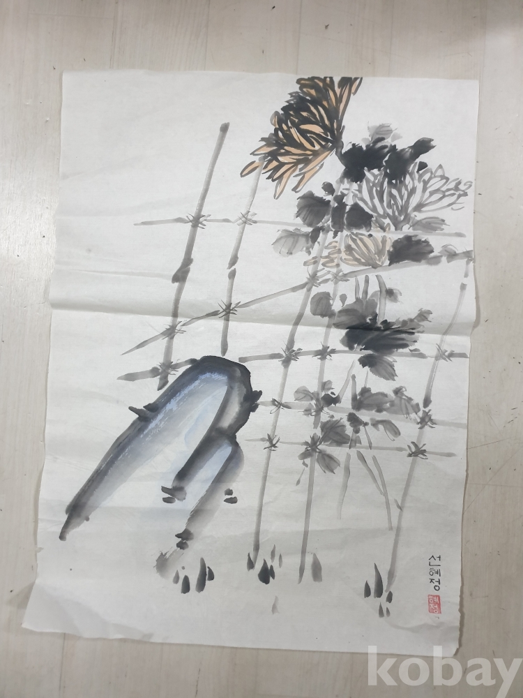 {천원경매}101-0845 국화 꽃그림(50*68, 접어서배송됨)