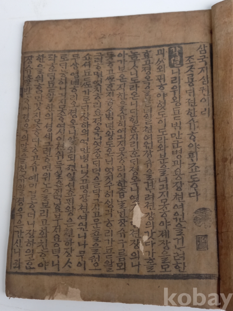 고 777) 한글로 된 방각본 삼국지 권二 목판본 1책