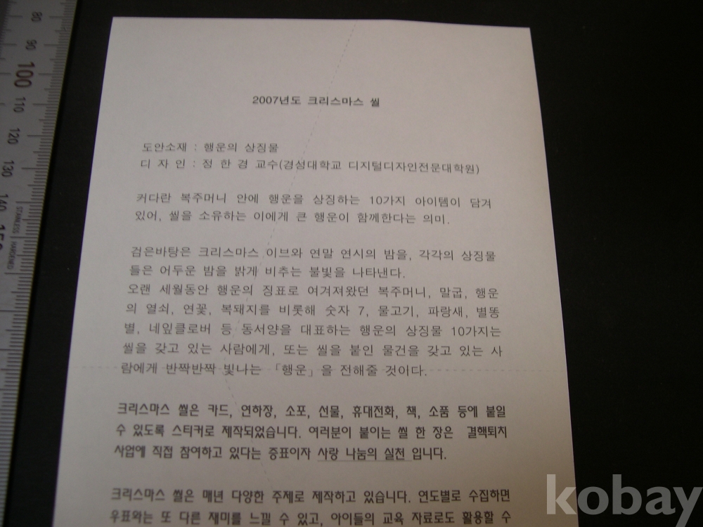 4. 크리스마스 씰은 이면 풀의 상태가 고르지 않고, 규격도 일정치 않은것이 많습니다.