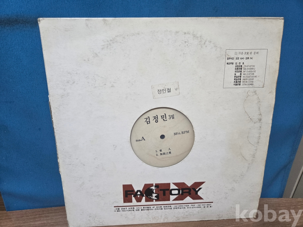 | 자켓상태 | EX : 약간의 마모, 모서리 찢김 존재 | 음반상태 | G : 눈에 띄는 스크래치, 튐 또는 노이즈 발생 | 발매정보 | 초반 | 가사지여부 | 무 |