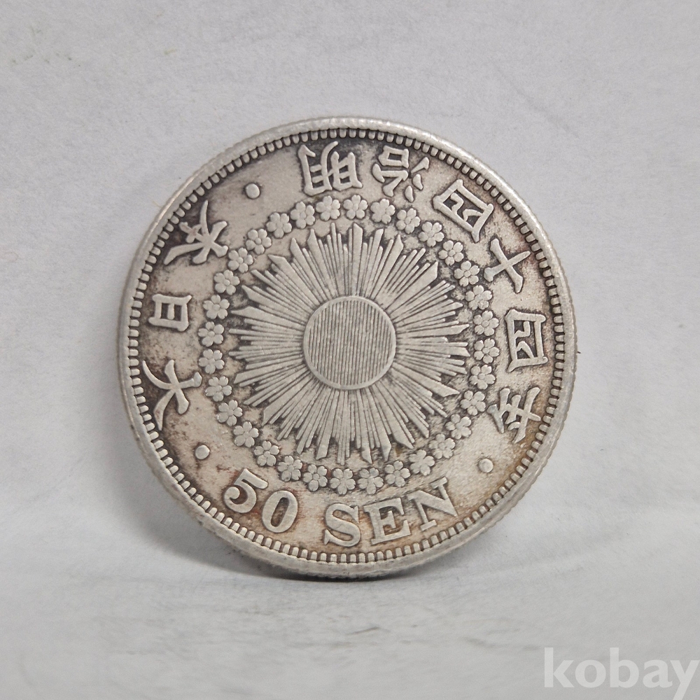 - 진품 일본 은화 - 명치(메이지) 44년(1911년) 오십전 욱일 은화