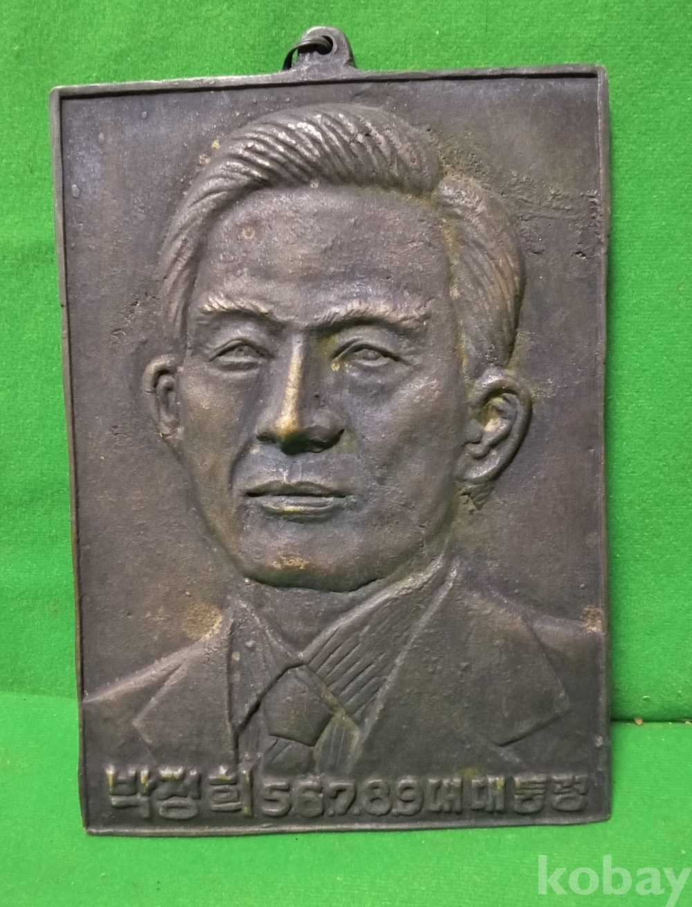 -[가보로gaboro 골동품] / 박정희 5·6·7·8·9대 대통령 기념 동판-벽에 걸 수 있도록 고리와 끈이 있음