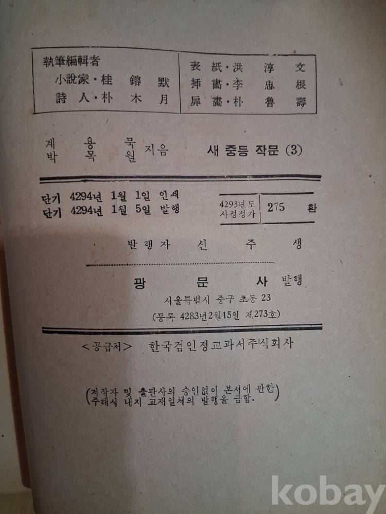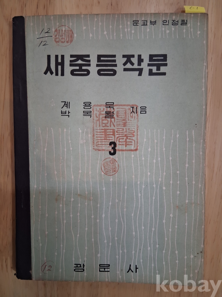 [1961년 교과서] 새중등작문3/계용묵,박목월/광문사