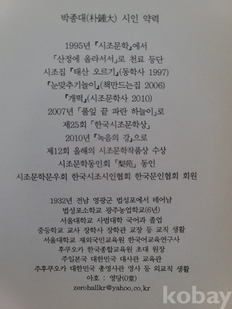 박종대(전라남도 영광: 1932) 저자서명 시조집.