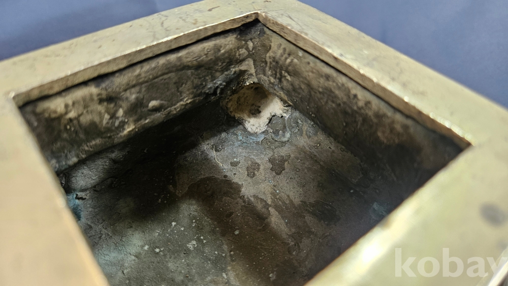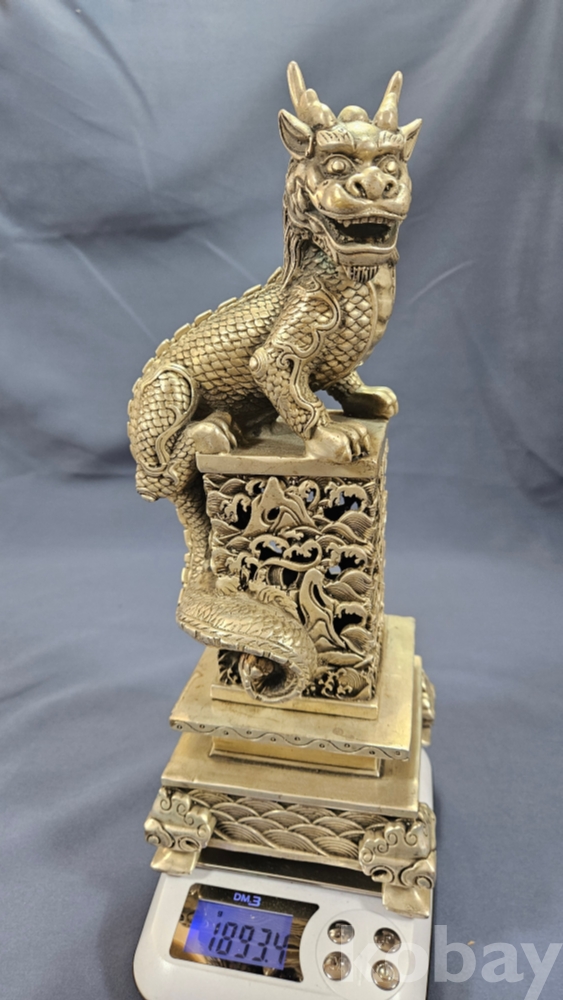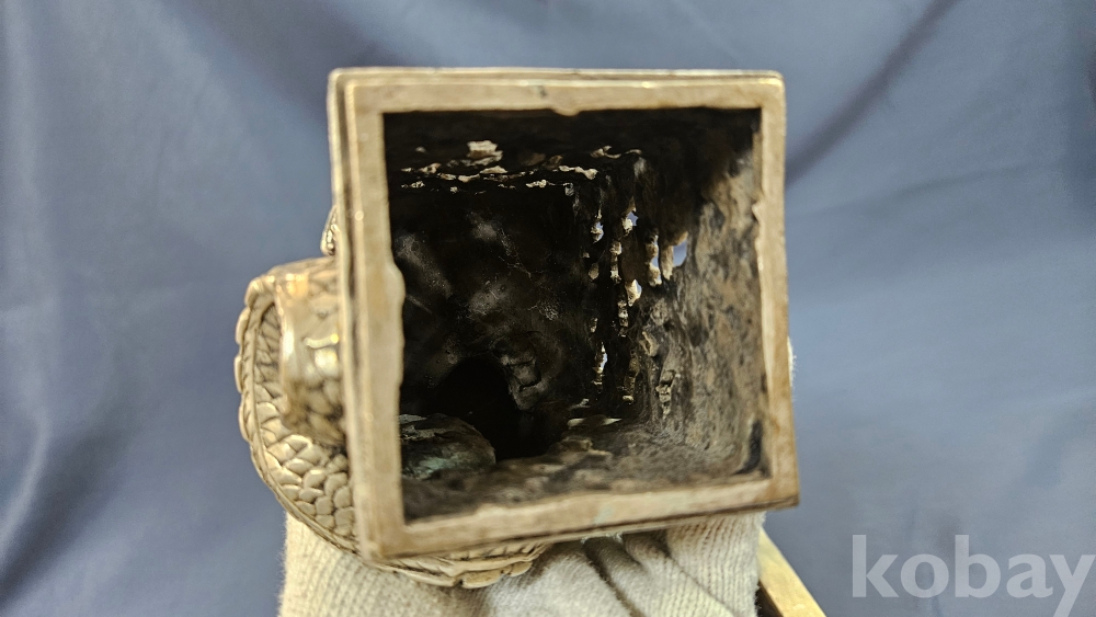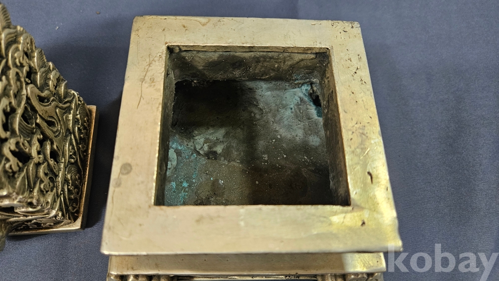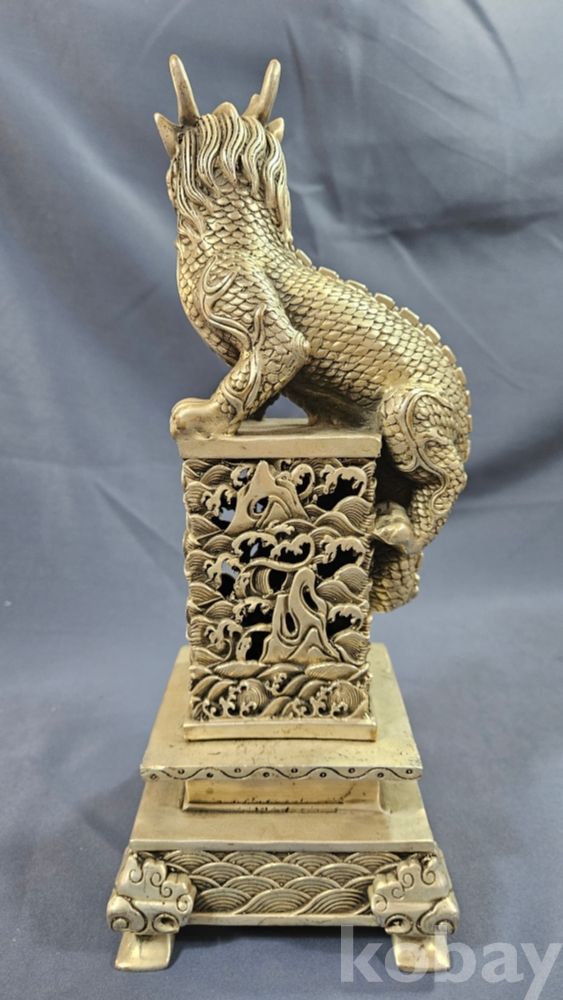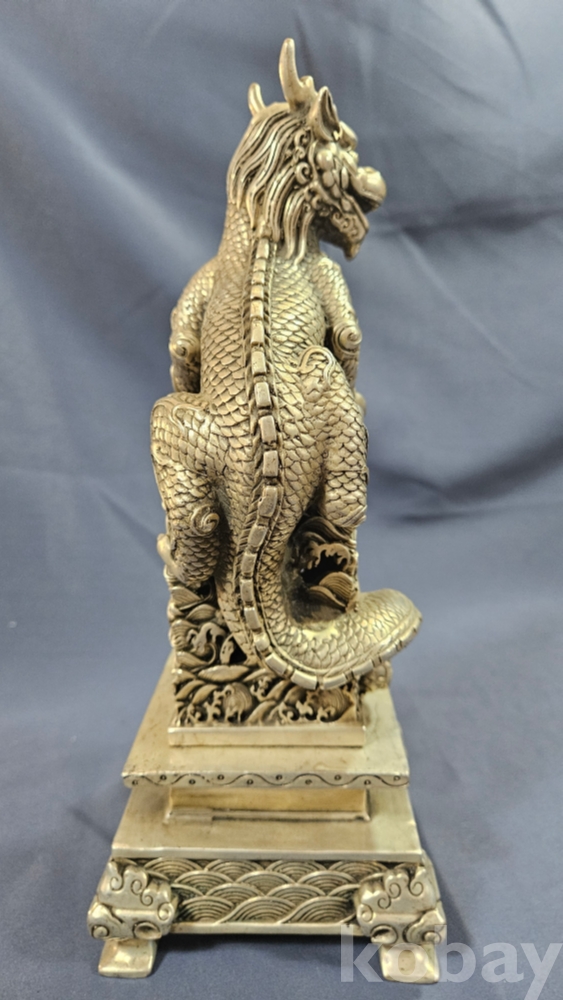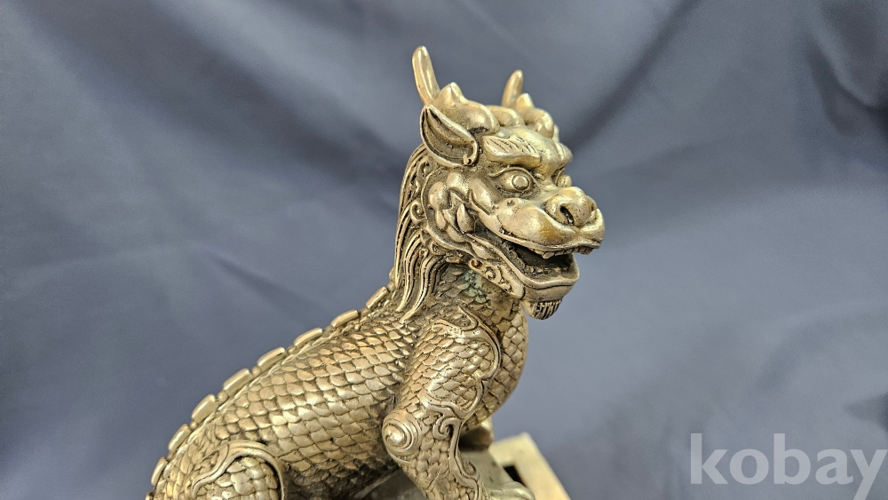 커다란 고대동물이 앉아있는 모습의 큼직한 백동 향로입니다.