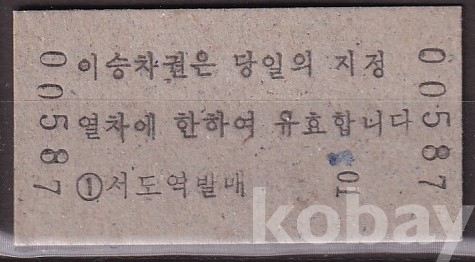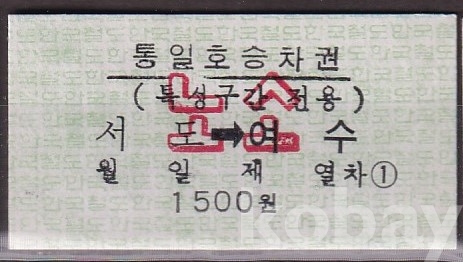 - 미사용 통일호 승차권(특정구간전용) 노소 " 서도 ▶ 여수 " 1500원