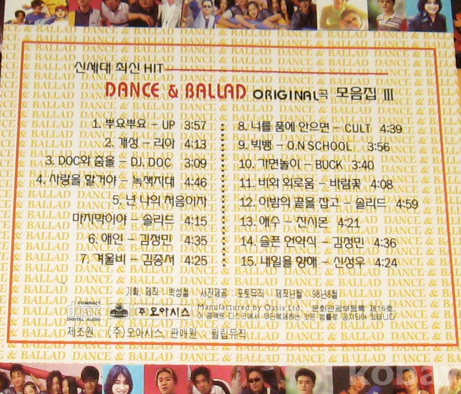 98년 오아시스 레코드 / 신세대 최신 힛트 댄스&발라드 오리지널곡 모음집3 CD ( 1998년 )