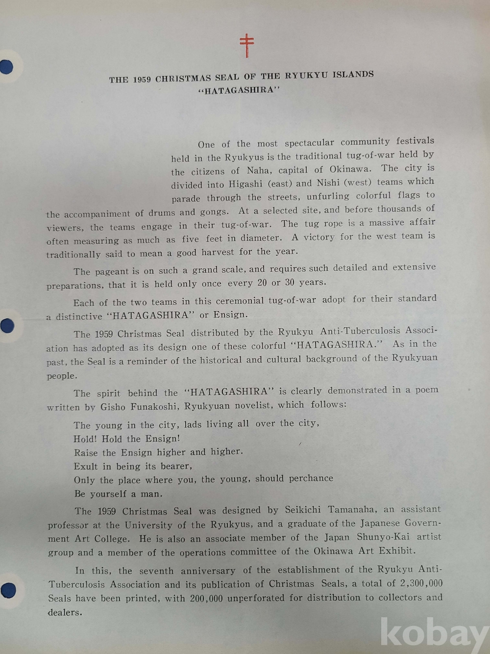 [크리스마스 씰] 琉球(RYUKYUS.류큐)/1959년(무공,안내서 포함)