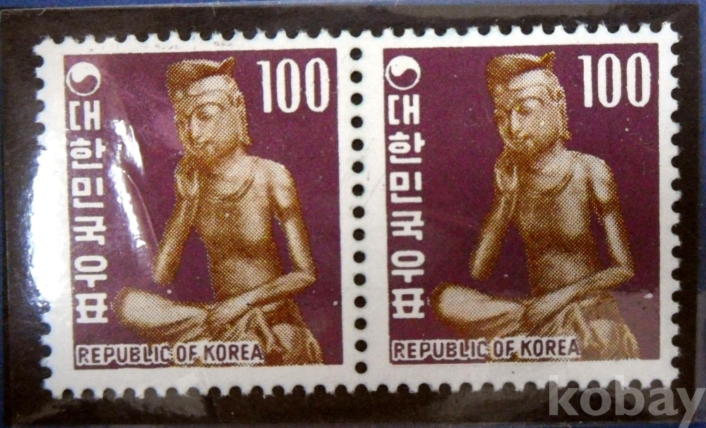 **** 제1차 그라비아 100원 미륵보살 위조우표 페어, VF,MNH
